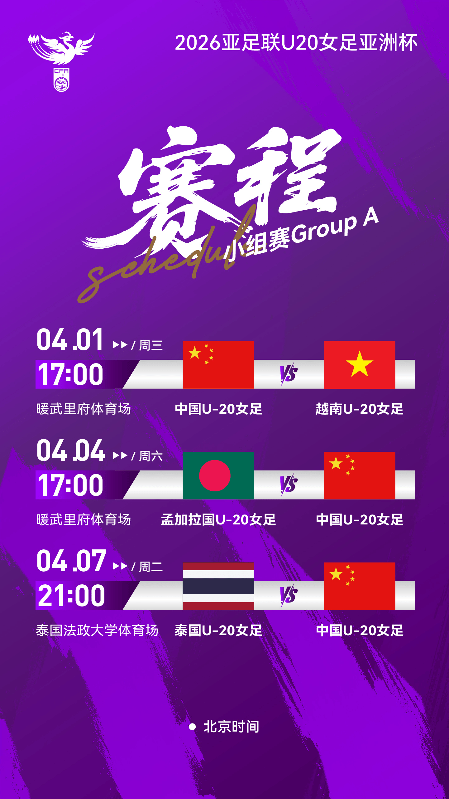 本届赛事共16支球队参加中国U20女足和孟加拉国、泰国分在A组。晋级四强的球队将获得今年U20女足世界杯的参赛资格。