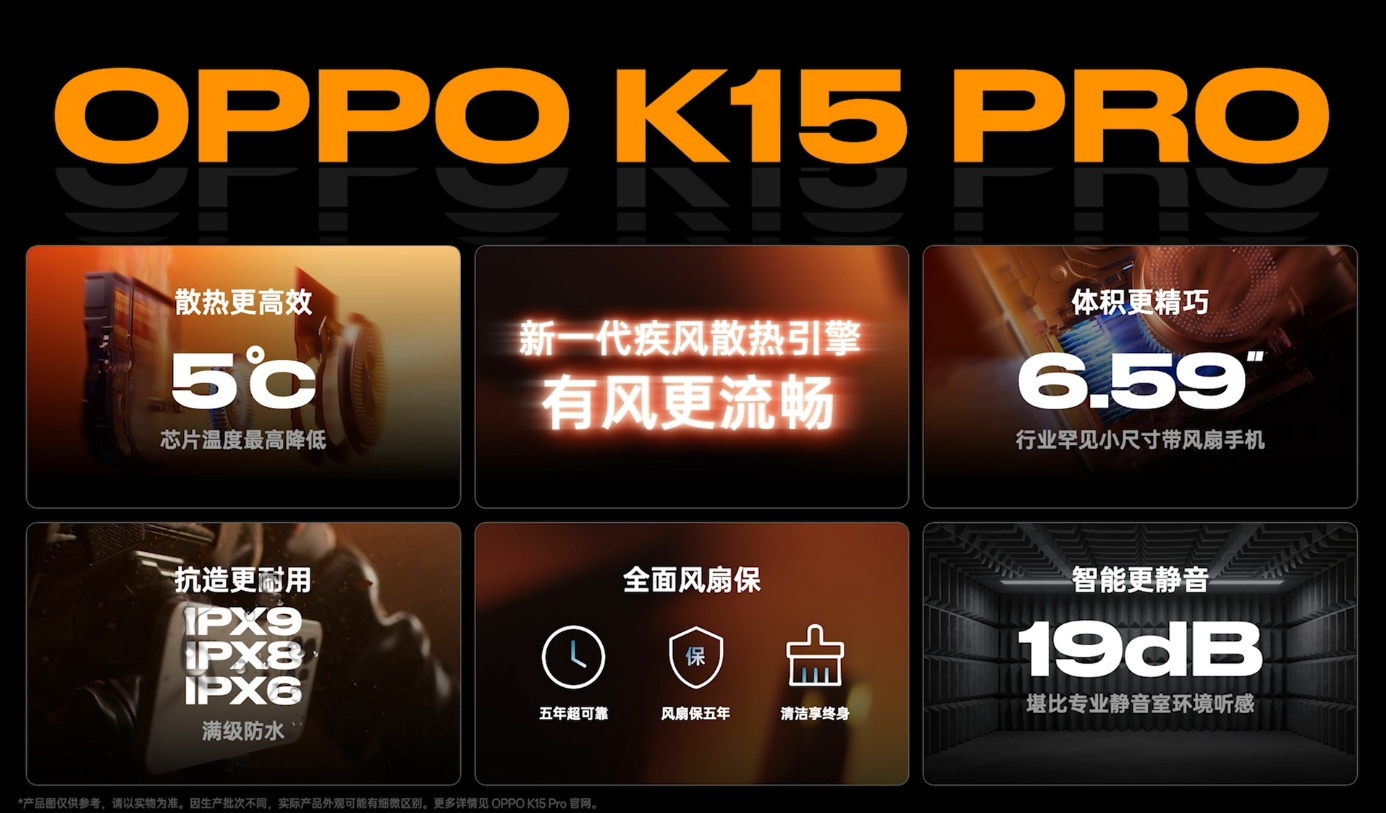 OPPO K15 系列正式发布:👇外观📱K15 Pro:6.59 英寸直屏、金属中框、晶盾玻璃、超薄卡片镜头;配色赛博光翼 / 光尘粉 / 起源灰,Pro 专属金色传说锻造碳后盖;3 颗岚影呼吸灯,支持 DIY 磁吸镜头盖📱K15 Pro+:6.78 英寸屏、金属中框、晶盾玻璃👇屏幕📱K15 Pro:144Hz 高刷屏📱K15 Pro+:165Hz 高刷屏👇性能📱K15 Pro:天玑 8500 SUPER + 潮汐引擎📱K15 Pro+:天玑 9500S + 潮汐引擎、超感触控芯片 + 灵犀物理肩键📱全系:专业陀螺仪,最高 800Hz 采样率👇散热📱新一代疾风主动散热引擎,IP69 防尘防水,风扇 5 年使用寿命,50% 转速噪音 19dB👇续航 / 充电📱K15 Pro:7500mAh 冰川电池 + 80W 闪充,配冰川电池聚能芯片📱K15 Pro+:8000mAh 冰川电池 + 100W 闪充,配冰川电池聚能芯片👇其他山海通信、5000 万 OIS 主摄 + 800 万超广角、ColorOS 16👇价格K15 Pro 12+256 简装:首销 7 天国补后 2464.15 元;标准版 12+256 国补 2719.15 元;12+512 国补 2999 元K15 Pro+ 12+256 简装:首销 7 天国补后 2634.15 元;标准版 12+256 国补 2999 元;12+512 国补 3499 元(简装版少了充电器充电线,一方面环保,另外一方面可以减少一点购机成本)