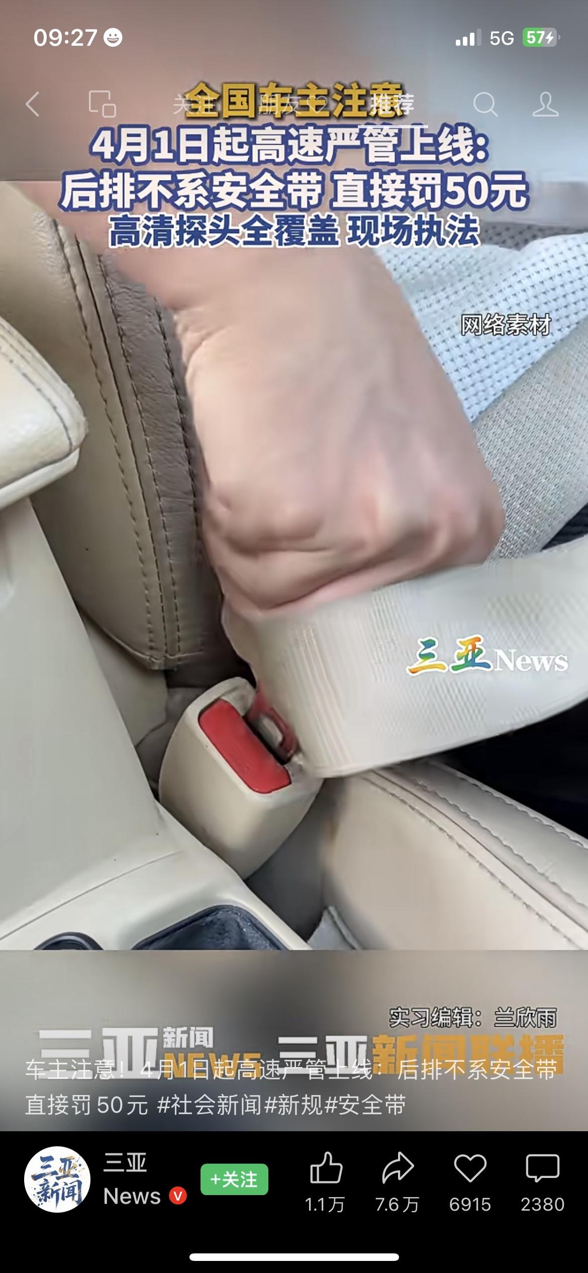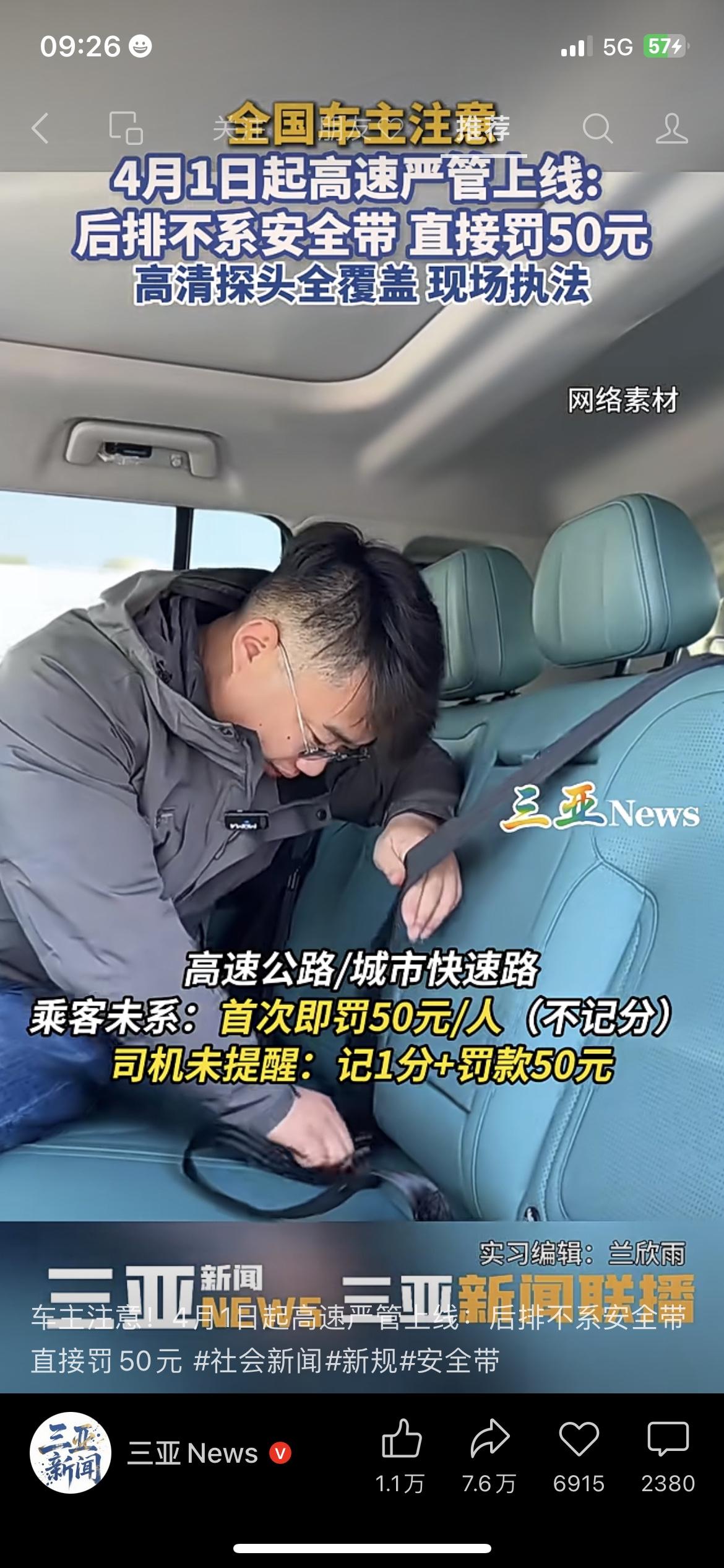 4月1日起严查!后排不系安全带,罚50元!司机未提醒也要被罚! 全国车主注意!4月1日起,高速及城市快速路后排安全带严管上线!后排乘客未系安全带,首次罚50元/人不记分;司机未主动提醒,直接记1分+罚50元! 此次严管靠高清探头+AI智能识别,无口头警告,抓拍即处罚。很多人误以为后排不用系安全带,实则高速碰撞时,未系安全带极易甩飞伤人。安全带就是生命带,不分前后排,上车务必系好! 交通新规 后排安全带 4月1日新规 车主必看 安全出行安全带新规