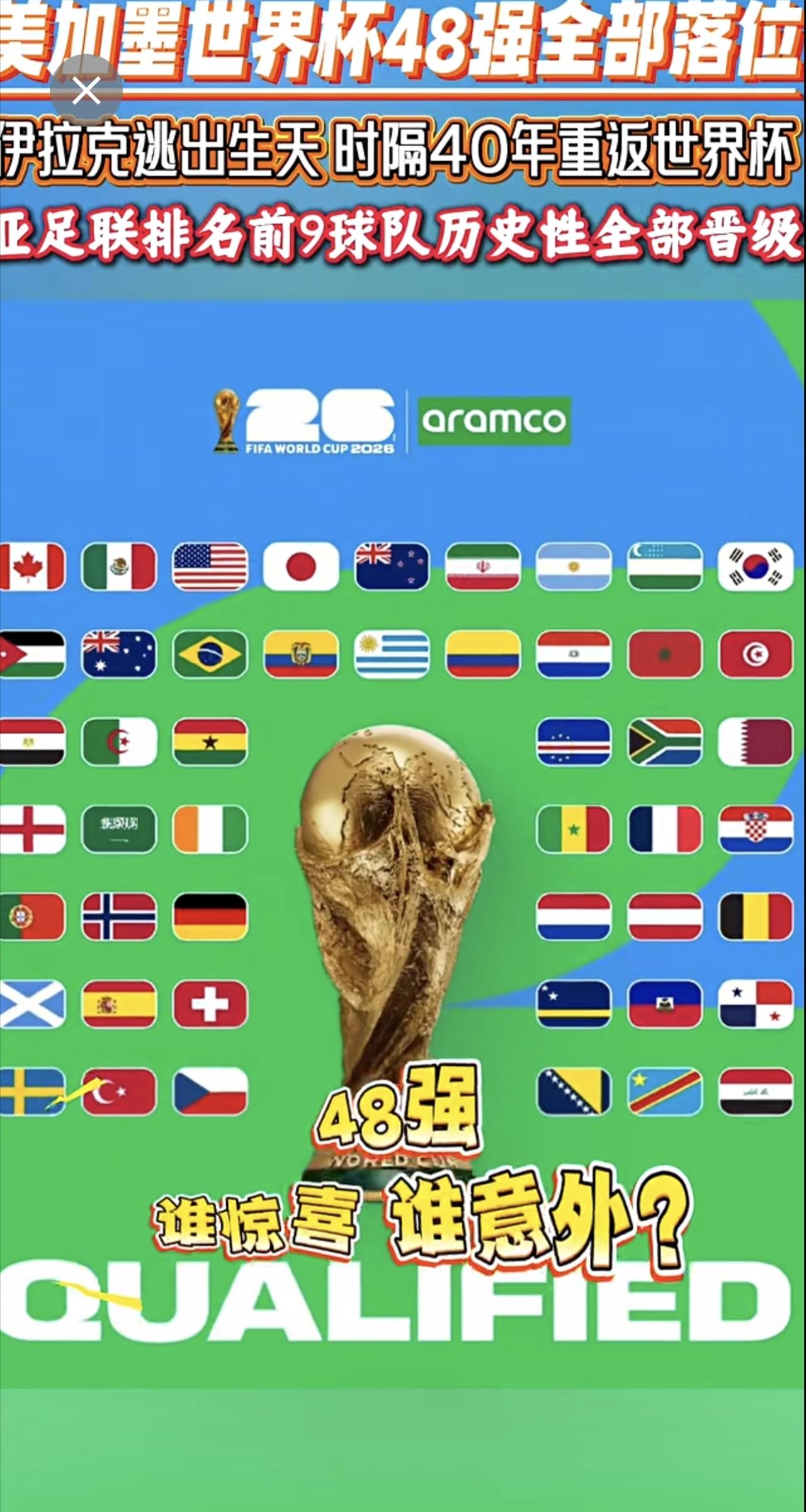 美加墨世界杯48强全部落位,伊拉克逃出生天,时隔40年重返世界杯!亚足联排名前9球队历史性全部晋级!世界杯 唯有足球不可辜负
