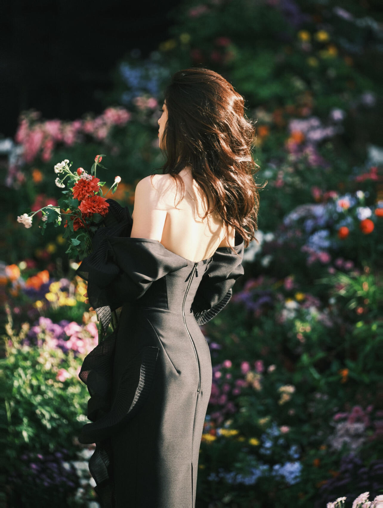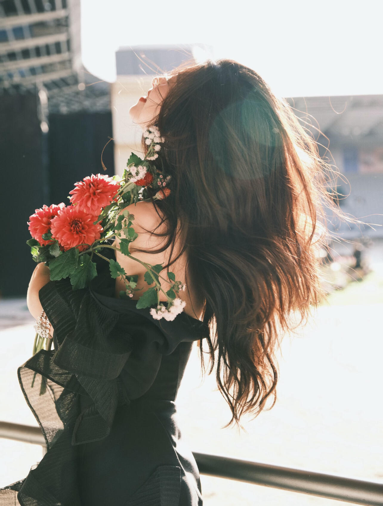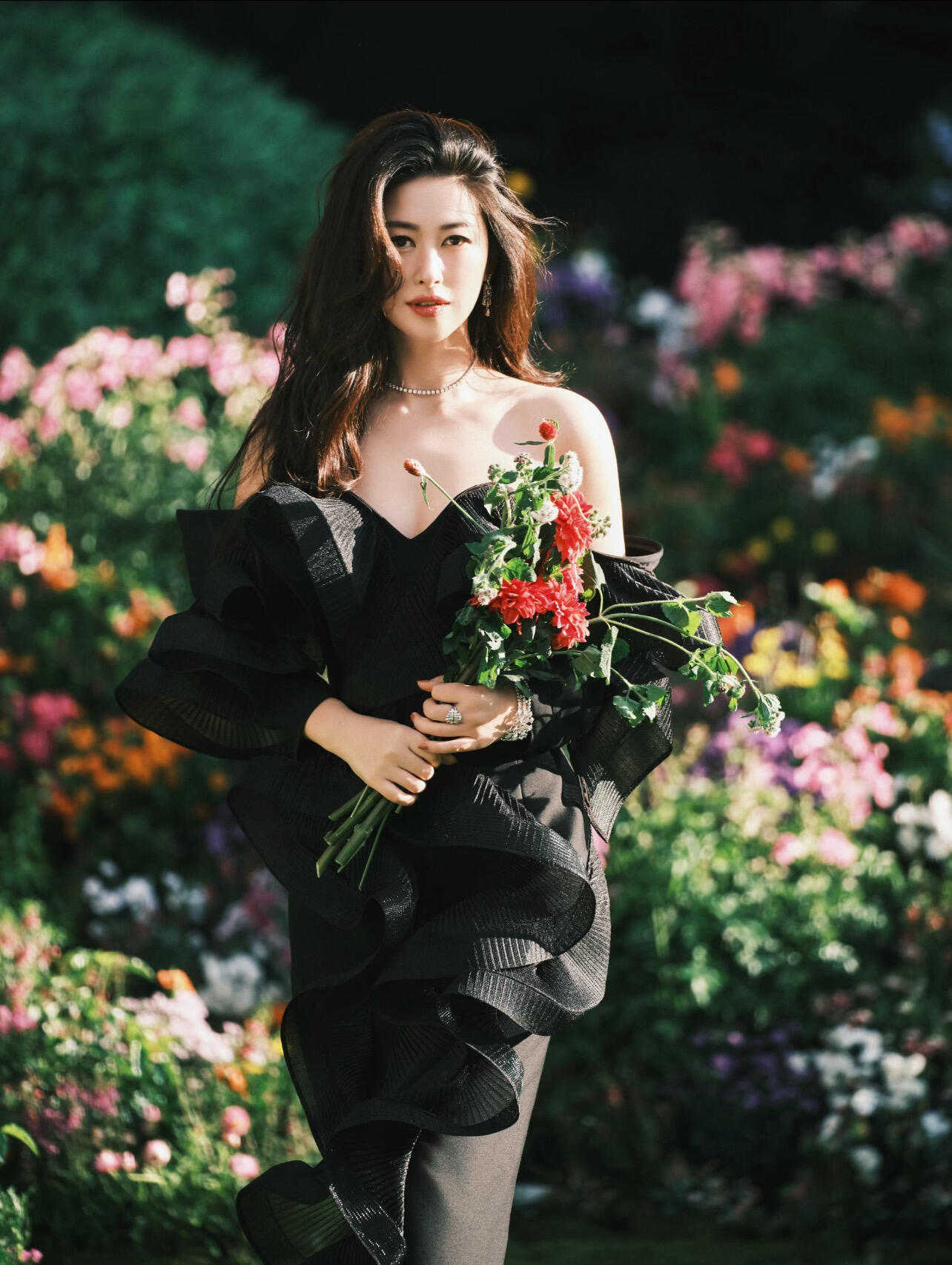 朱珠短开衫高腰白裙 热烈如玫瑰,发现朱珠拍过不少捧花照啊好明媚!