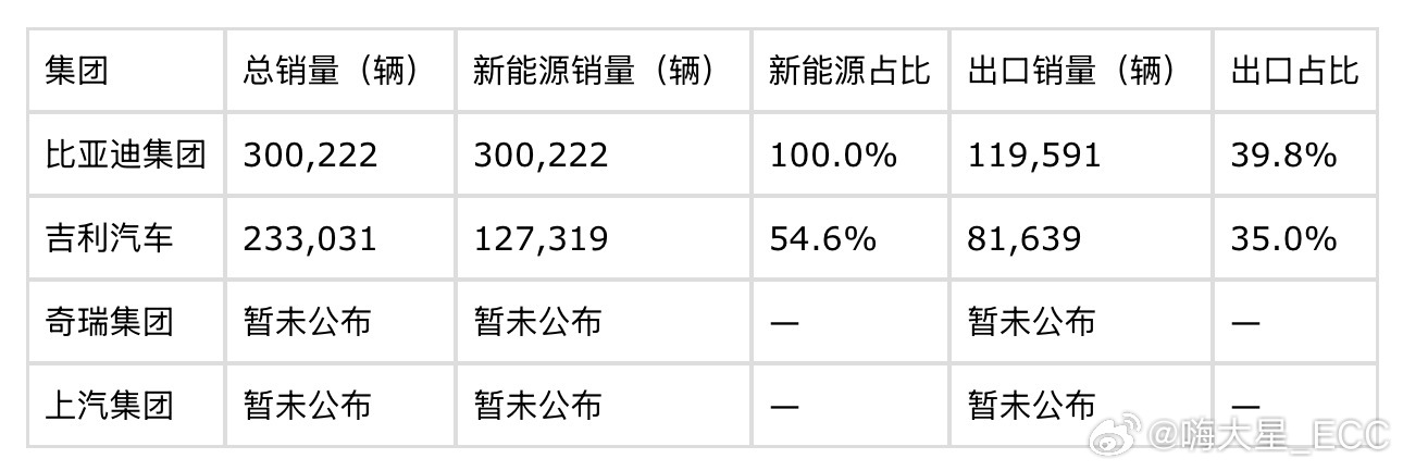 • 比亚迪集团:30.0w,出口占比39.8%• 吉利汽车:23.3w,出口占比35%