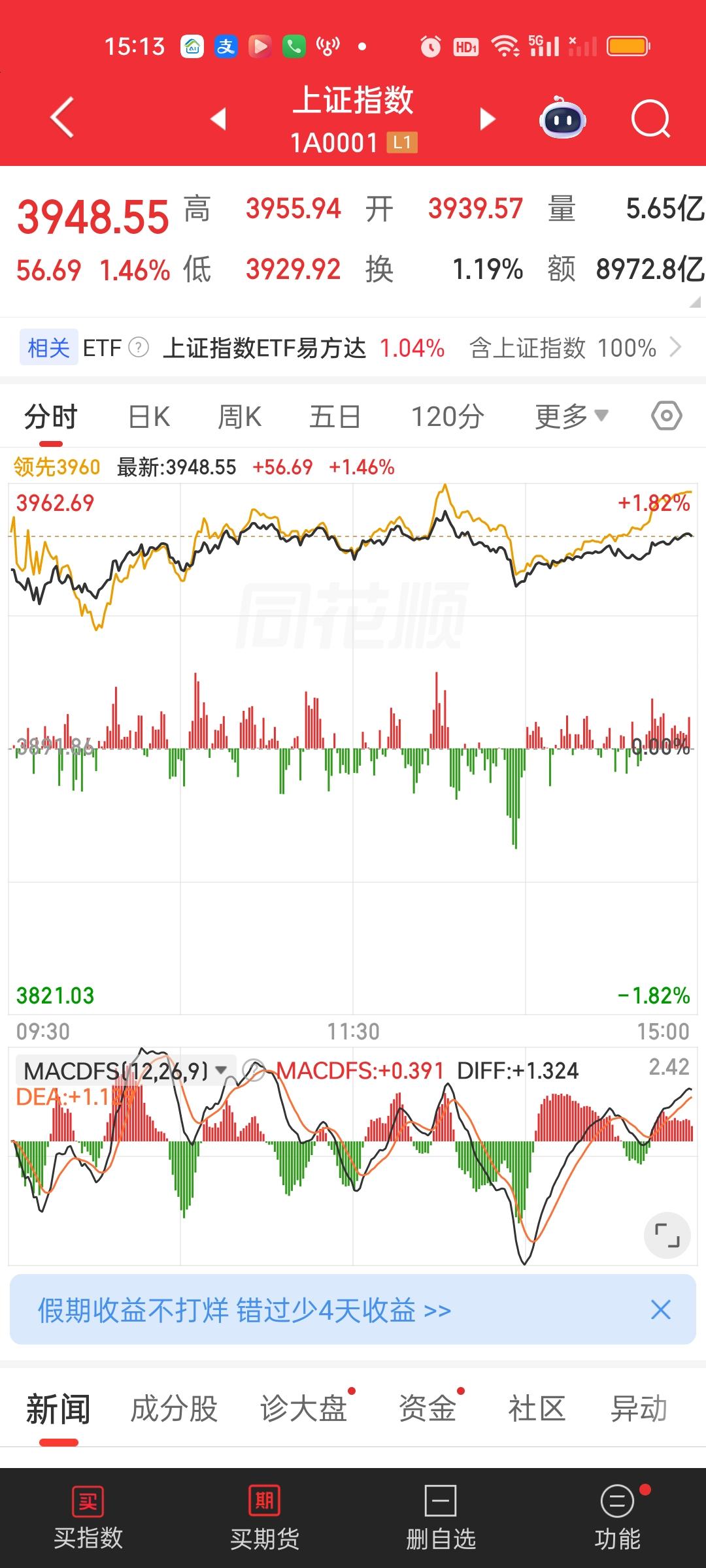 收盘了,上方缺口磨磨蹭蹭最后还是勉强补了。缺口位置3955.71,今天最高点39