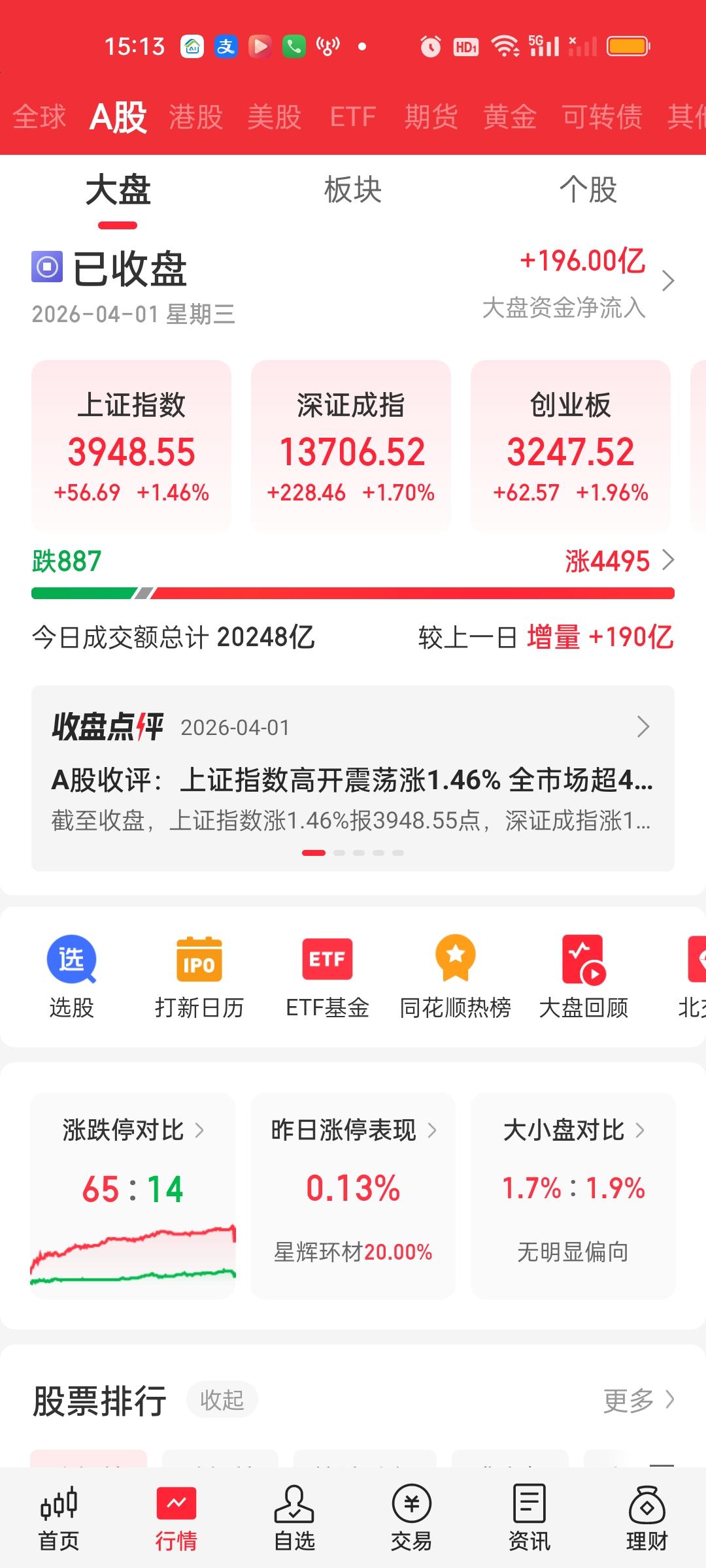 收盘了,上方缺口磨磨蹭蹭最后还是勉强补了。缺口位置3955.71,今天最高点3955.94,就高了0.23点,真的是一点都不愿多涨,给人的感觉咋那么刻意呢? 现在上方缺口也补了,是不是要开始二次探底了?首先我认为风险肯定没有解除,二次探底还会有,但不见得就在明天,要看美股晚上还会不会接着上涨。要看明天冲高有没有人砸盘。今天尽管有4500家个股上涨,但跌停家数也有14家,大盘的情绪并没有真正好转。 所以我更倾向于今天的反弹是受益于美股昨晚的大幅反弹。说白了就是全球市场都在上涨,你不涨都不行的那种。并不是大盘就有多强了。说到强还得是人家小日子和小棒子,小日子暴涨了2600多点,小棒子暴涨了8.44%,相比较我们就涨了1.46%和1.70%,简直疲软至极!