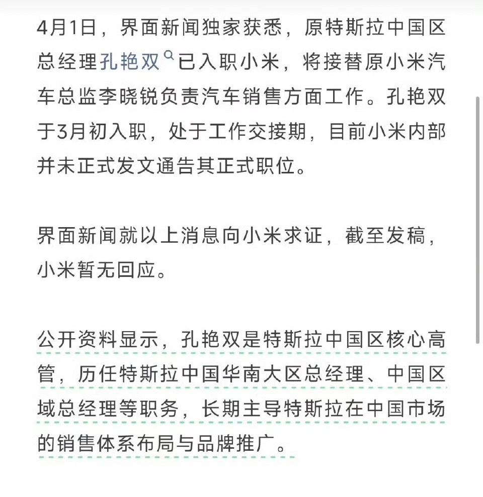 原特斯拉中国区高管入职小米特斯拉两个高管都来小米了啊优秀的企业总是不自觉的吸引优秀的人!
