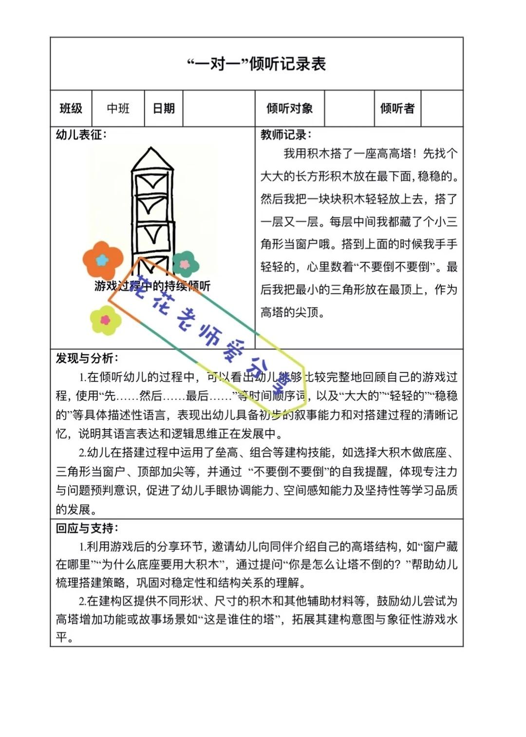 幼儿园“一对一”倾听记录表🌈 colorwalk 一对一倾听 一对一倾听记录 一对一倾听观察 幼儿表征 幼儿表征画 幼儿表征图画 幼儿表征记录 幼儿园