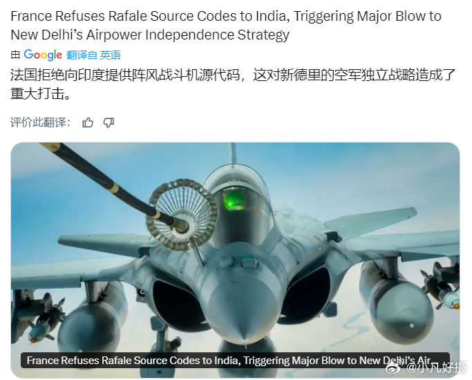 法国拒绝向印度提供阵风战斗机的关键软件(源代码),限制了印度独立修改雷达、任务计算机和电子战等关键系统的能力。这会影响印度提高自主能力的计划,因为印度需要获得法国的批准才能升级或整合像阿斯特拉或布拉莫斯这样的国产武器。美伊以冲突海外新鲜事黄媒不会说的真相