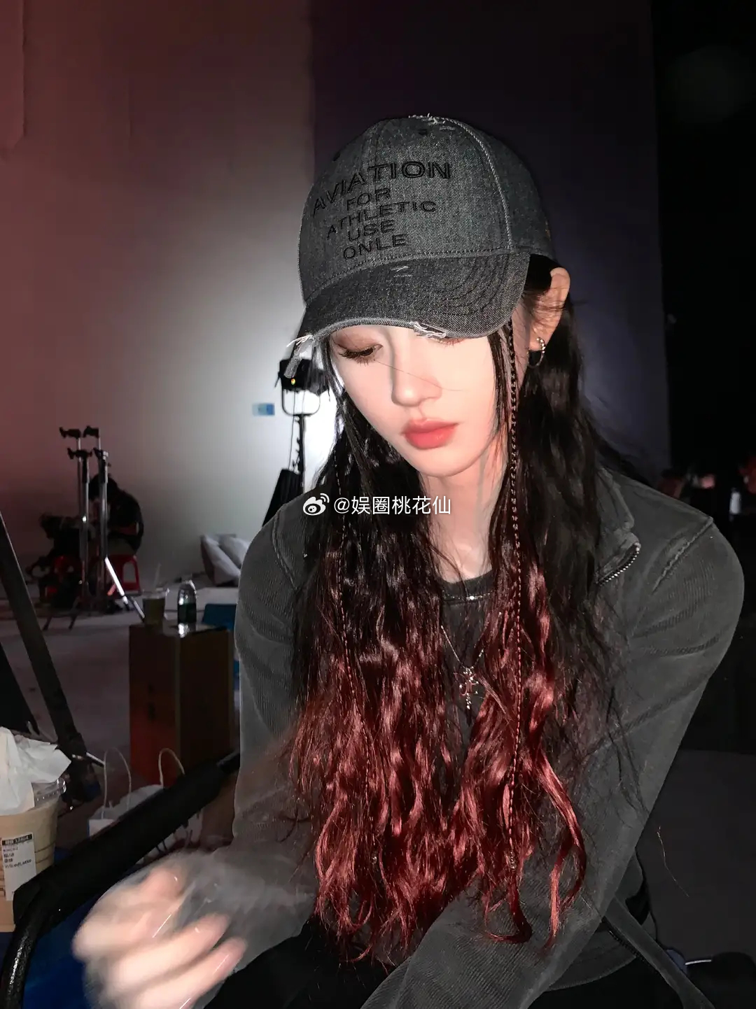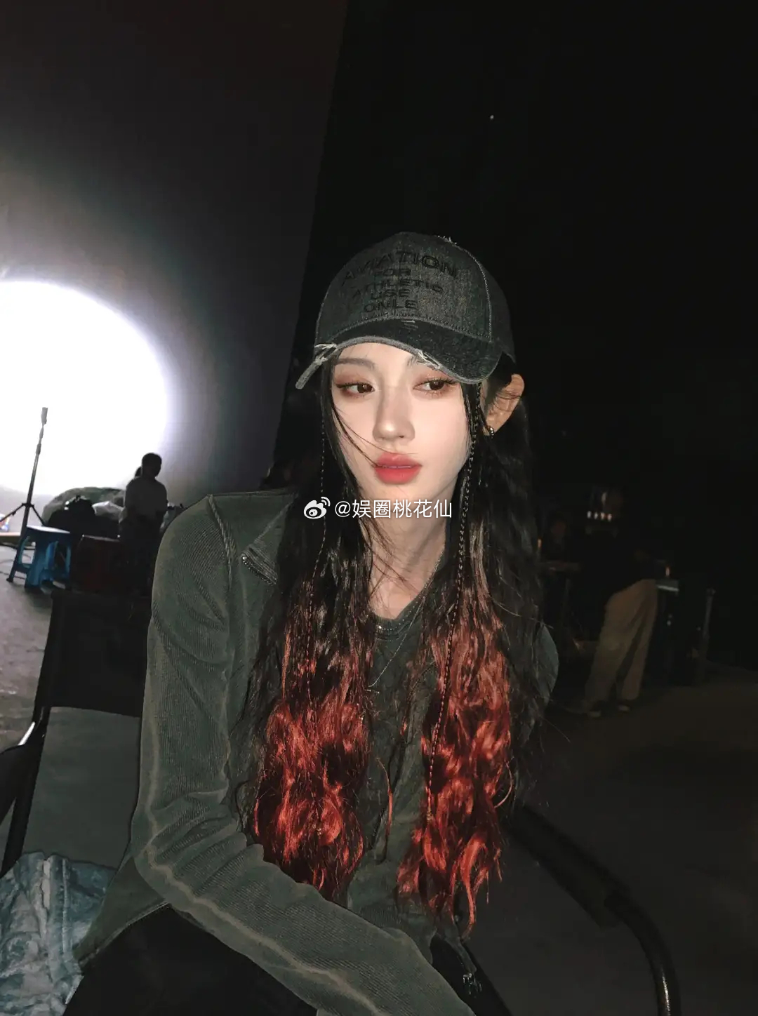 随性又炸场!鞠婧祎渐变红卷发+灰绿夹克,甜酷休闲风直接封神!!!!!!!