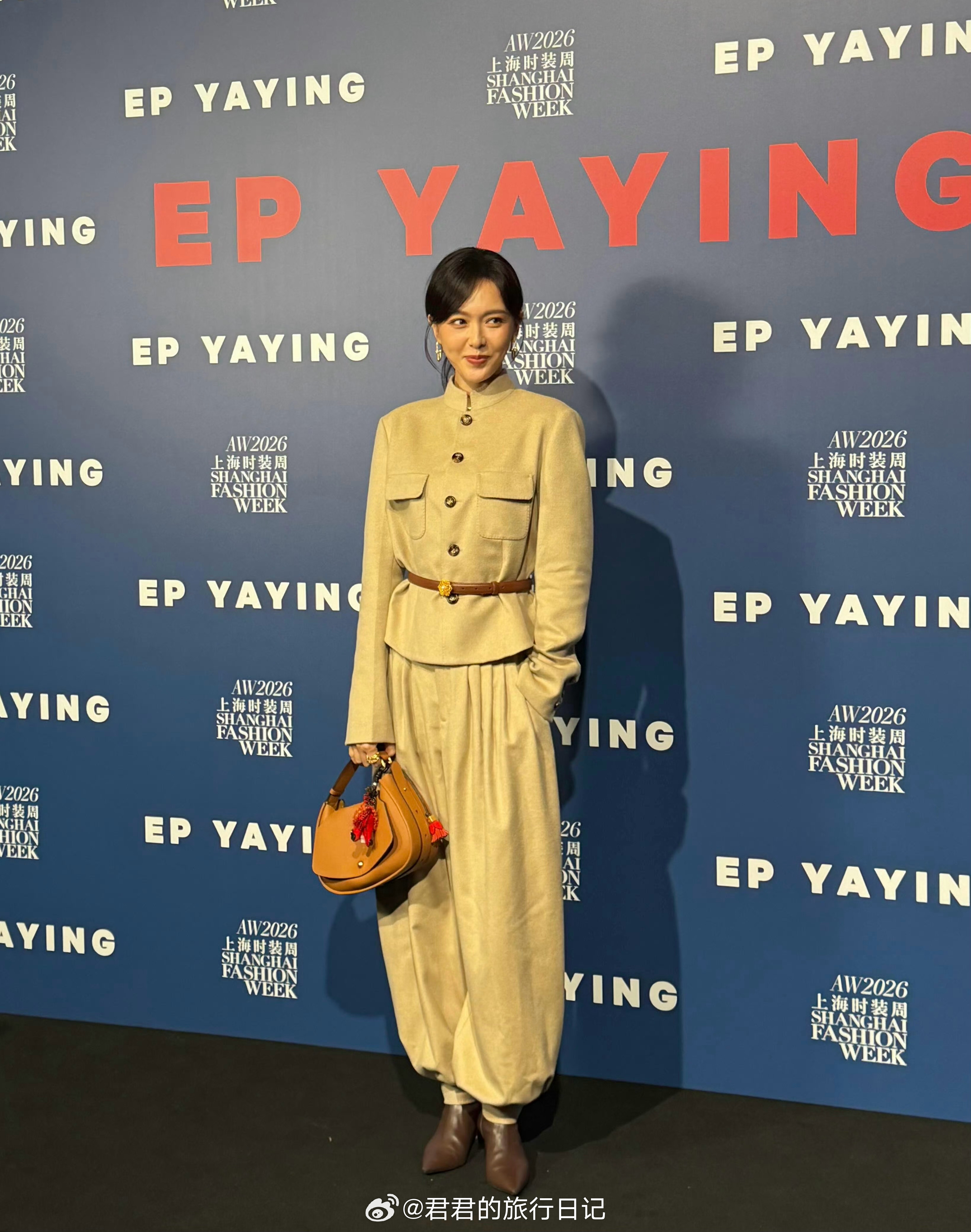 唐嫣的时装周造型,我以为是在拍抗战片
