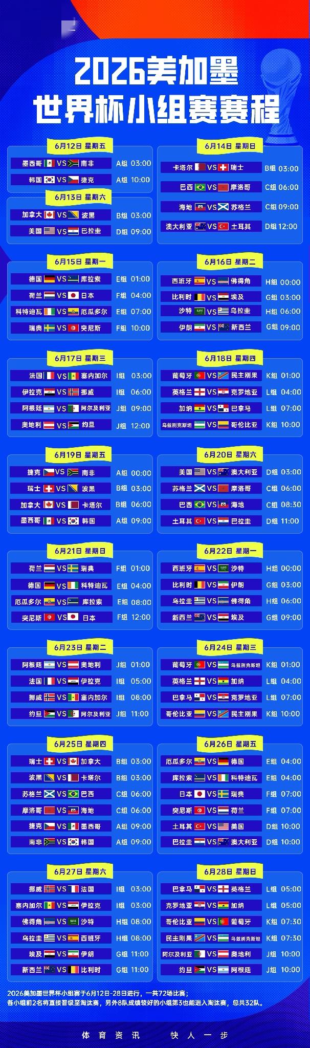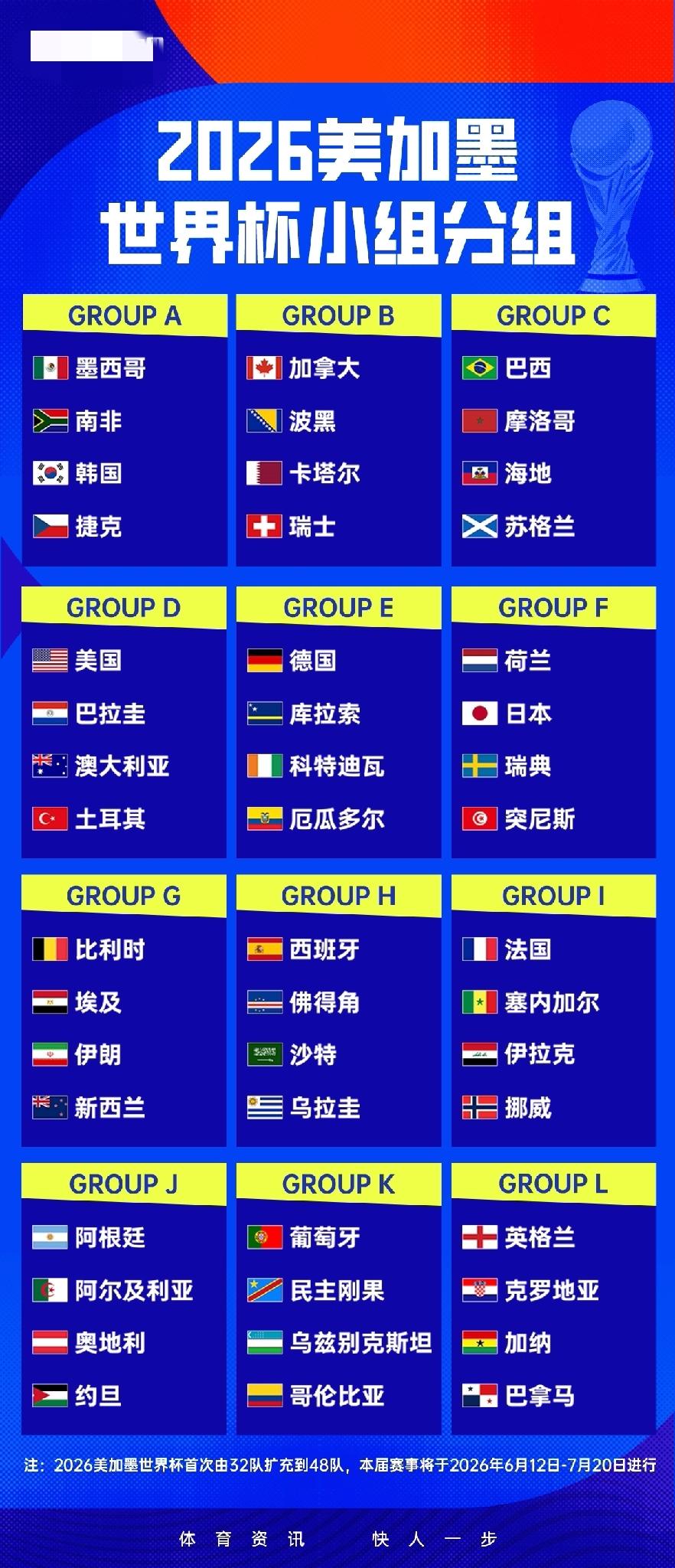 意大利无缘美加墨!世界杯48队出炉! 伊拉克时隔40年重返世界杯, 6月12日开幕 04月01日 2026美加墨世界杯48支球队全部出炉,伊拉克时隔40年重返世界杯!意大利无缘美加墨,连续三届无缘世界杯,世界杯将在6月12日(72天后)开幕!世界杯具体参加的48支球队、分组、赛程如下图