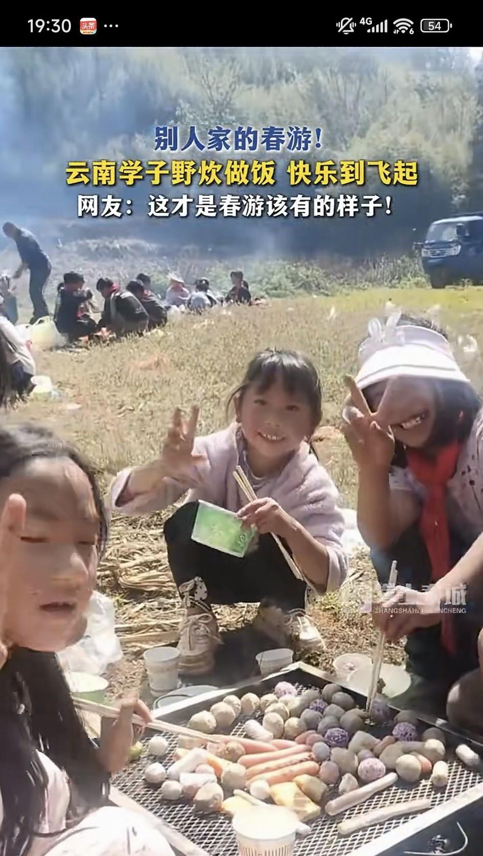 看看现在小朋友们的春游野炊,想起我小时候,我小学的时候,学校组织过三次野炊,初中组织过两次。 那时候去野炊是真的非常开心,一晃很多年过去了,很怀念以前那种单纯的快乐。 反正那时候我们自己做出来的饭菜不咋地,但是吃的很开心。