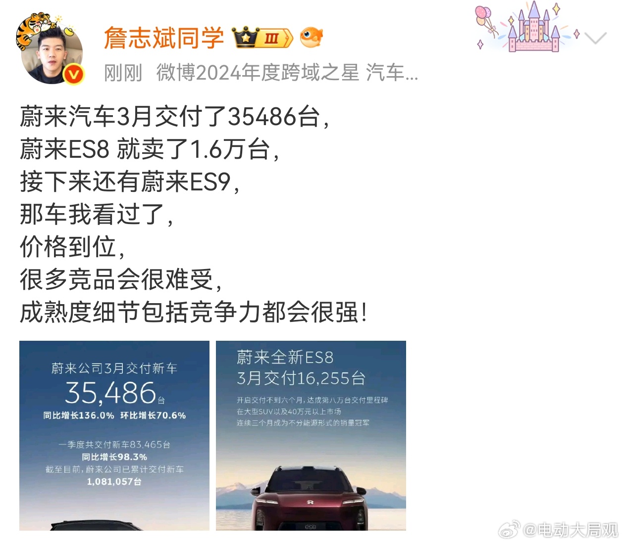2026年3月,全新ES8完成16,255台新车交付。开启交付181天,全新ES