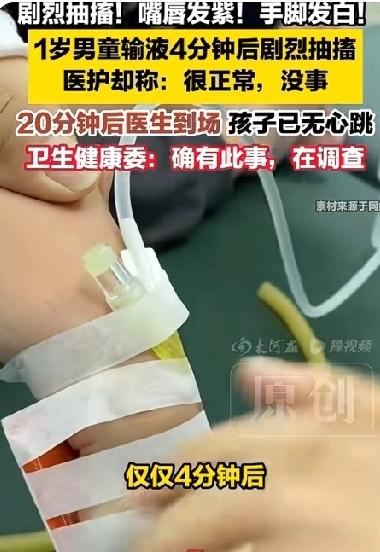 湖北恩施1岁男童输液4分钟后离世,剧烈抽搐,嘴唇发紫,手脚发白医生却称很正常! 2026年3月25日,湖北恩施一位1岁的男童小杜,因为“咳嗽伴间断发热20天”,被家人带到了恩施州中心医院妇儿医院(金龙院区)。据孩子母亲描述,当时医生评估后说“问题不大”,建议住院观察几天,查查病因 。虽然孩子当时没发烧,但家人想着来都来了,住下查明原因也好,便办了住院 。然而,谁也没想到,厄运来得如此之快。 当天下午1点左右,孩子开始输液,用的是阿奇霉素。可刚过了仅仅4分钟,孩子突然开始剧烈抽搐。家属当场就慌了,赶紧呼救 。 面对心急如焚的家长和正在抽搐的婴儿,医护人员的反应让家属难以接受。据孩子母亲讲述,赶来的护士和管床医生给出的回应是:“这不是过敏,阿奇霉素不需要做皮试。”甚至还说“抽搐很正常,没事。” 随后给孩子推了镇静剂 。 这短短的几句话,在后来被反复提起,成了家属心中最大的痛点和疑问。在家长看来,孩子都抽成这样了,怎么还能叫“正常”? 但更绝望的还在后面。就在这“没事”的几分钟里,孩子的状况急转直下——嘴唇开始发紫,手脚发白。直到20多分钟后,ICU的医生才赶到现场,但此时,孩子已经没有了心跳 。 事发后,恩施州卫生健康委迅速介入,并于4月1日发布了官方通报。通报确认了患儿杜某某于3月25日住院,在输液期间突发抽搐,后经抢救无效死亡的事实。目前,病历资料和监控视频已被封存,并委托了第三方司法鉴定机构进行鉴定 。据媒体报道,医院方表示目前正在走程序,等待尸检结果,而家属方面也处于巨大的悲痛之中 。 我们常说医者仁心,但在具体的医疗场景中,“及时发现”和“正确判断”有时比治疗本身更重要。尤其是在儿科,孩子不会表达,病情变化快,家长的呼救就是最紧急的信号。当家长反映孩子剧烈抽搐时,那绝不是“没事”,而是必须立即排查过敏性休克等致命风险的紧急状况 。 虽说阿奇霉素不用皮试,但错就错在,面对如此剧烈的反应,医护人员不仅没有警惕,反而在第一时间给出了“正常”的定论,这直接导致了黄金抢救时间的流逝 。如果当时医务人员能够警醒,及时发现孩子可能就不会离世。 一条鲜活的小生命,就这样在短短二十多分钟里消逝了。目前尸检结果还没出来,我们等待一个公正的调查结果。但无论结果如何,那个1岁孩子的哭声,再也听不到了。愿这样的悲剧,不要再发生。