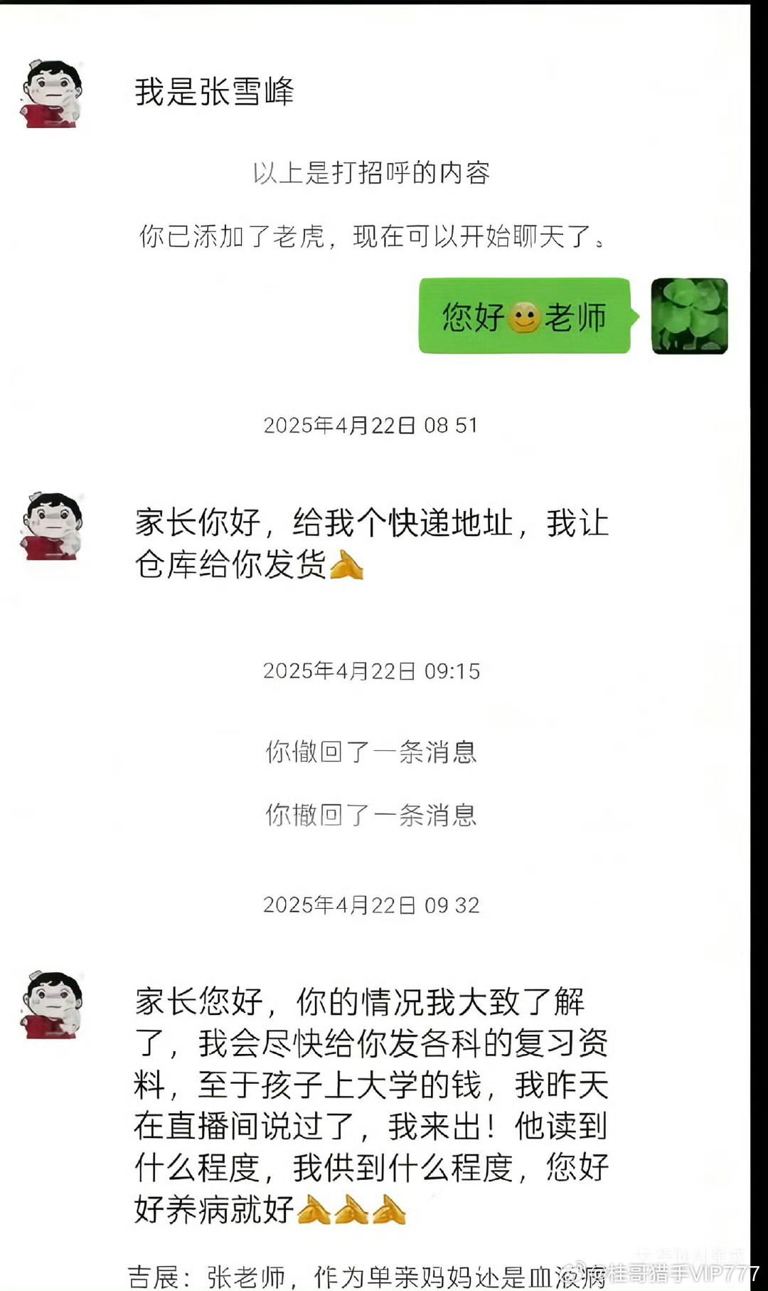 张雪峰老师的两张聊天截图,他真算是一个大写的人。