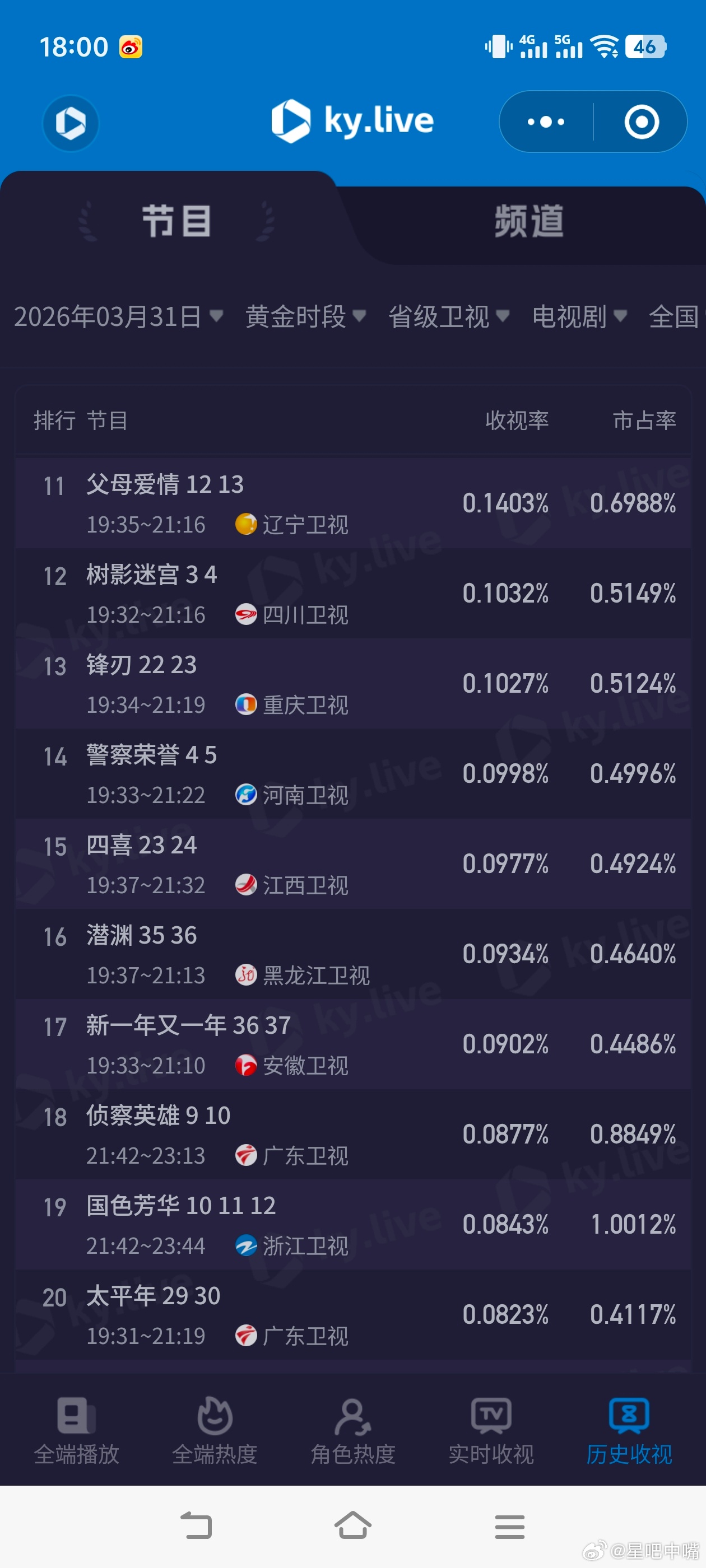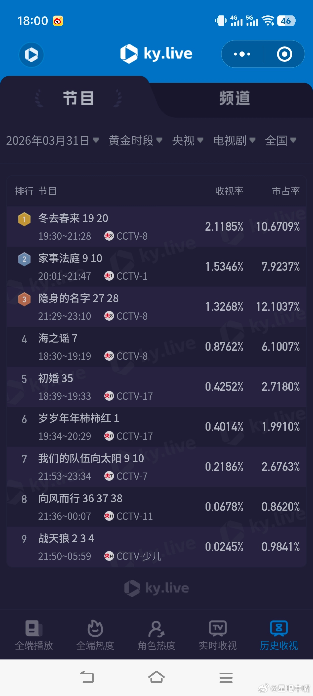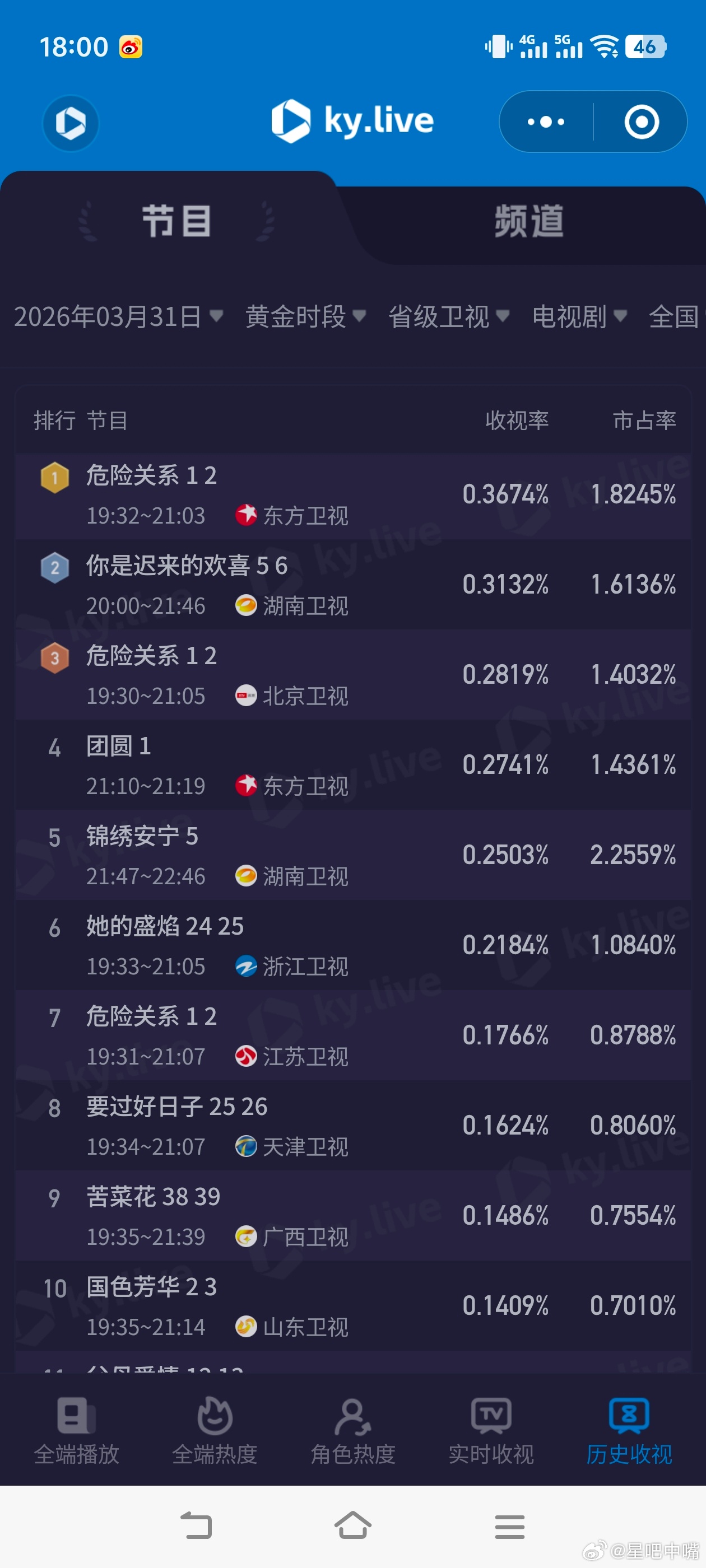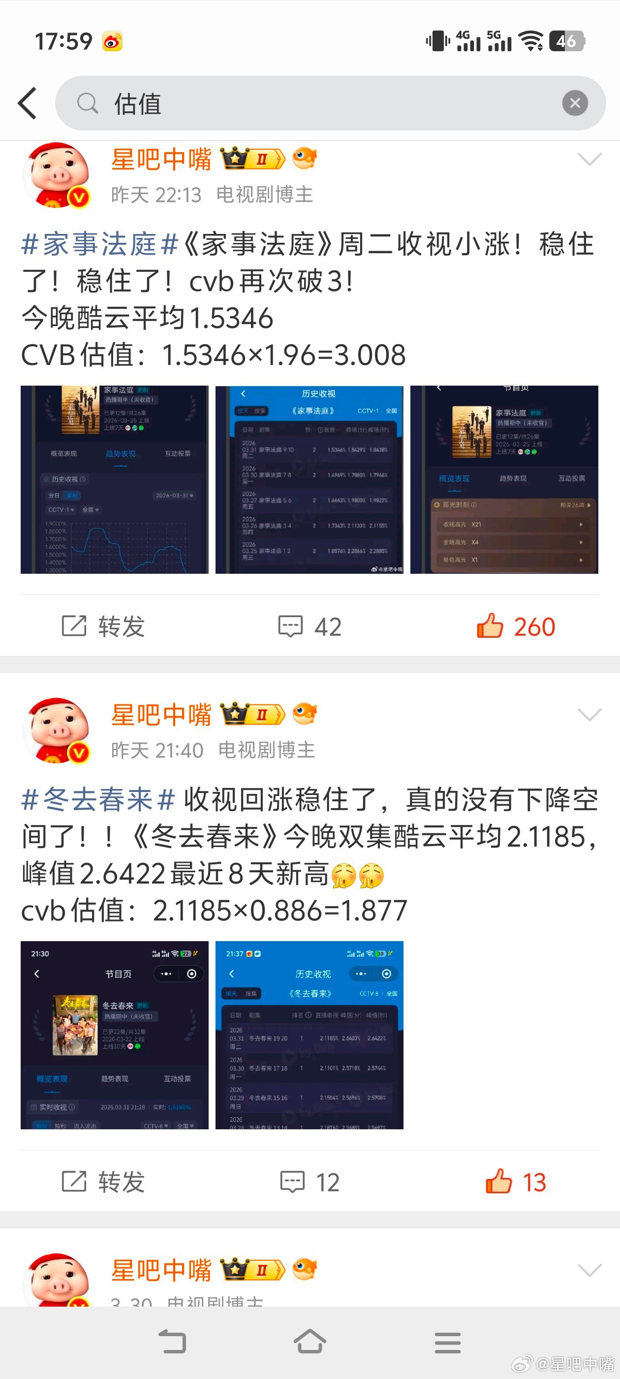 家事法庭2.939,酷云1.5346,系数1.915冬去春来1.896,酷云2.1185,系数0.895危险关系0.432,酷云0.3674,系数1.176危险关系0.332,酷云0.2819,系数1.178她的盛焰0.289,酷云0.2184,系数1.323