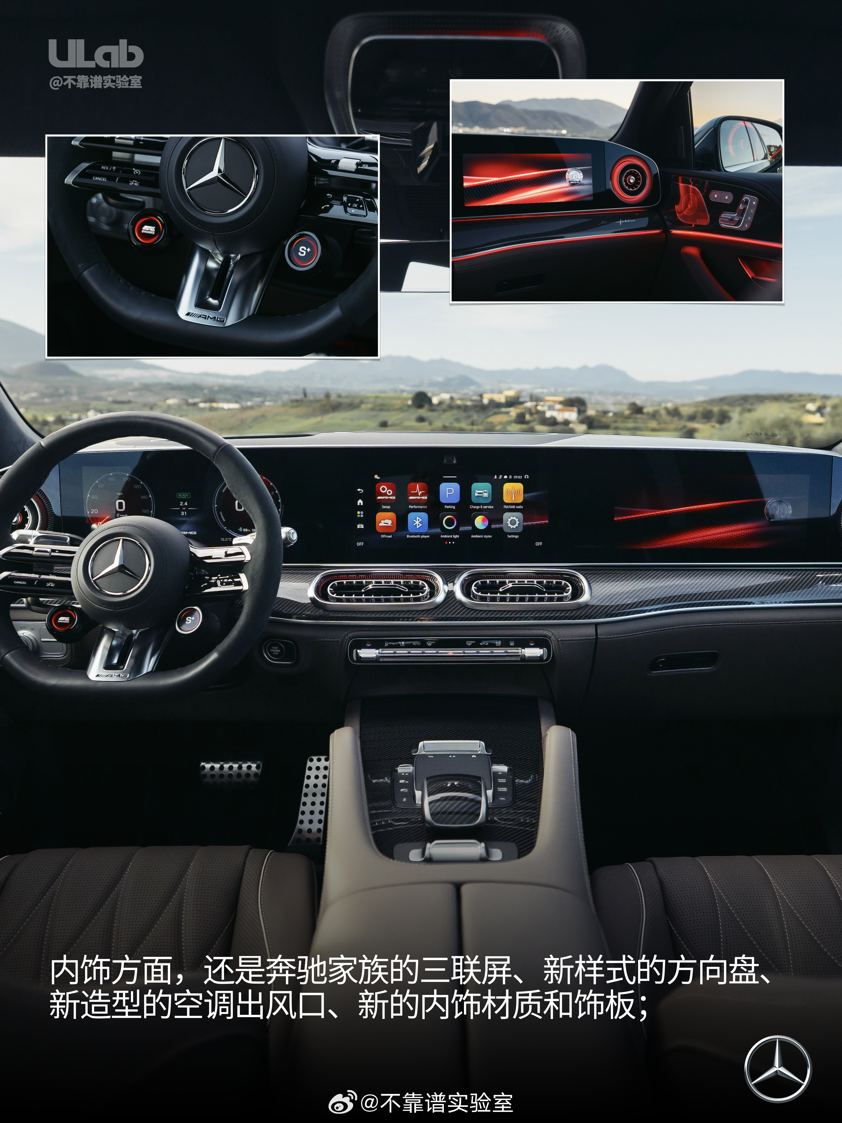 ……以及最新版MB.OS躲不开的三联屏,奔驰好像刻意地在拒绝把它们做成一个贯通的“天际屏”大v聊车车评精选汽场全开奔驰