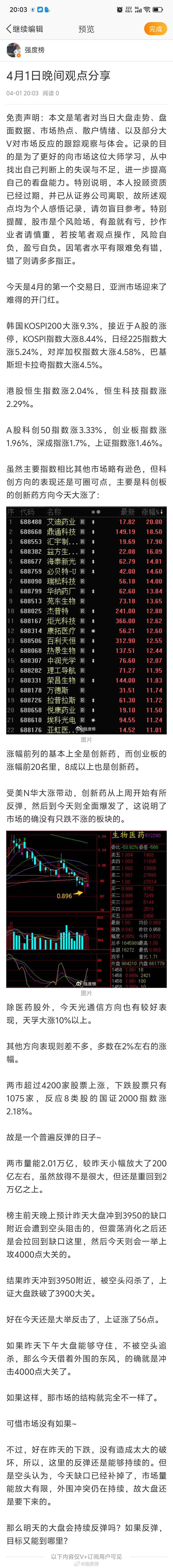 晚间分享股票A股4月1日晚间观点分享今天是4月的第一个交易日,亚洲市场迎来了难得