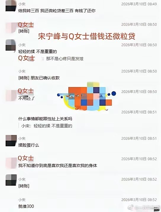 离大谱!宋宁峰今年45岁了,还是个男演员,居然300块钱的网贷都要找小三借,这经济情况得差成什么样啊?像他这种男演员,一年至少也能有100万左右的收入,结果他浑身上下300块钱都没有,实在是离谱。不过再一次证明,宋宁峰赚的钱的确都给张婉婷了,自己身上没留钱,不想经过张婉婷的消费只能借网贷了。而小三也的确不是图宋宁峰的钱,而是真喜欢宋宁峰,不然一般女人看到对象连300块钱都要找自己借,早就跑了。但小三却甘愿给宋宁峰当情人,这不是真爱是什么?宋宁峰还是挺厉害的,长的不帅,年龄也不小了,居然能迷倒两个女人,小三最后爆料,也是因为逼宋宁峰离婚不成,抱着得不到就毁掉的想法。不过宋宁峰玩脱了,现在东窗事发,两边都得罪了,事业也没了,以后真得穷下去了。