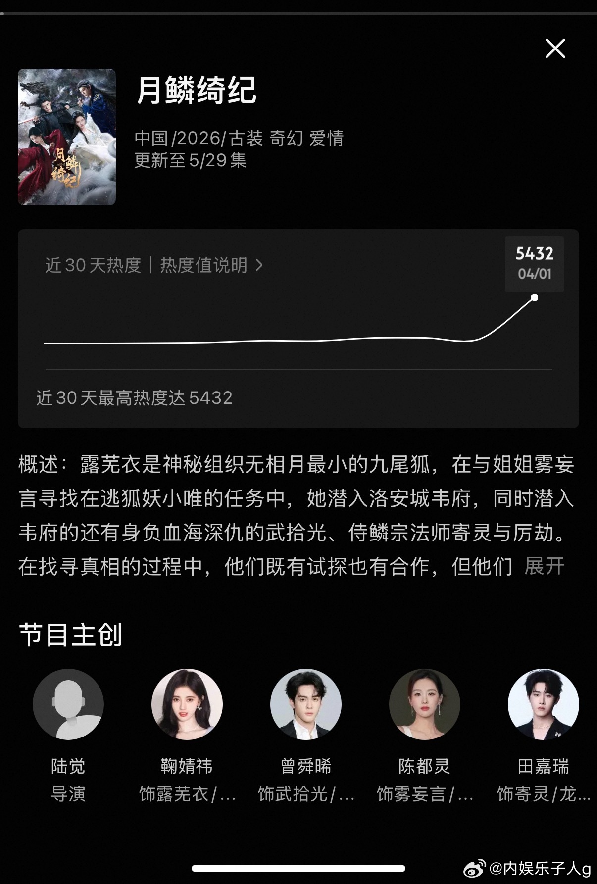 鞠婧祎 陈都灵这部月麟绮纪好奇怪的数据…热度才5000多是我没刷新么?但是拉新还