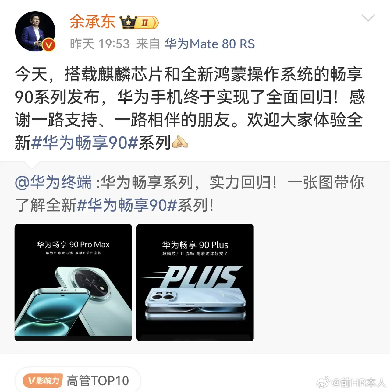 搭载麒麟芯片和全新鸿蒙操作系统的畅享90系列发布,华为手机终于实现了全面回归!