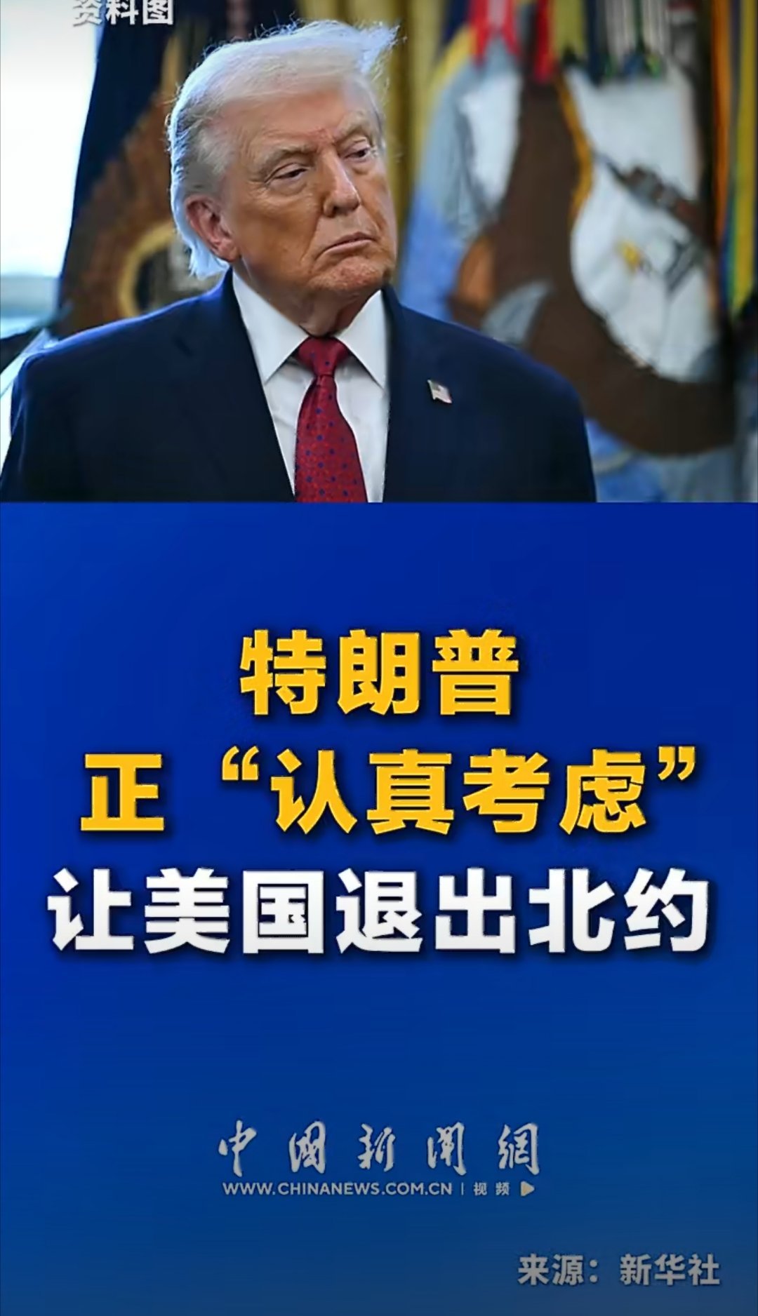 4月1日,新华社消息,特朗普因北约盟友未协助打击伊朗,称正认真考虑退出北约。