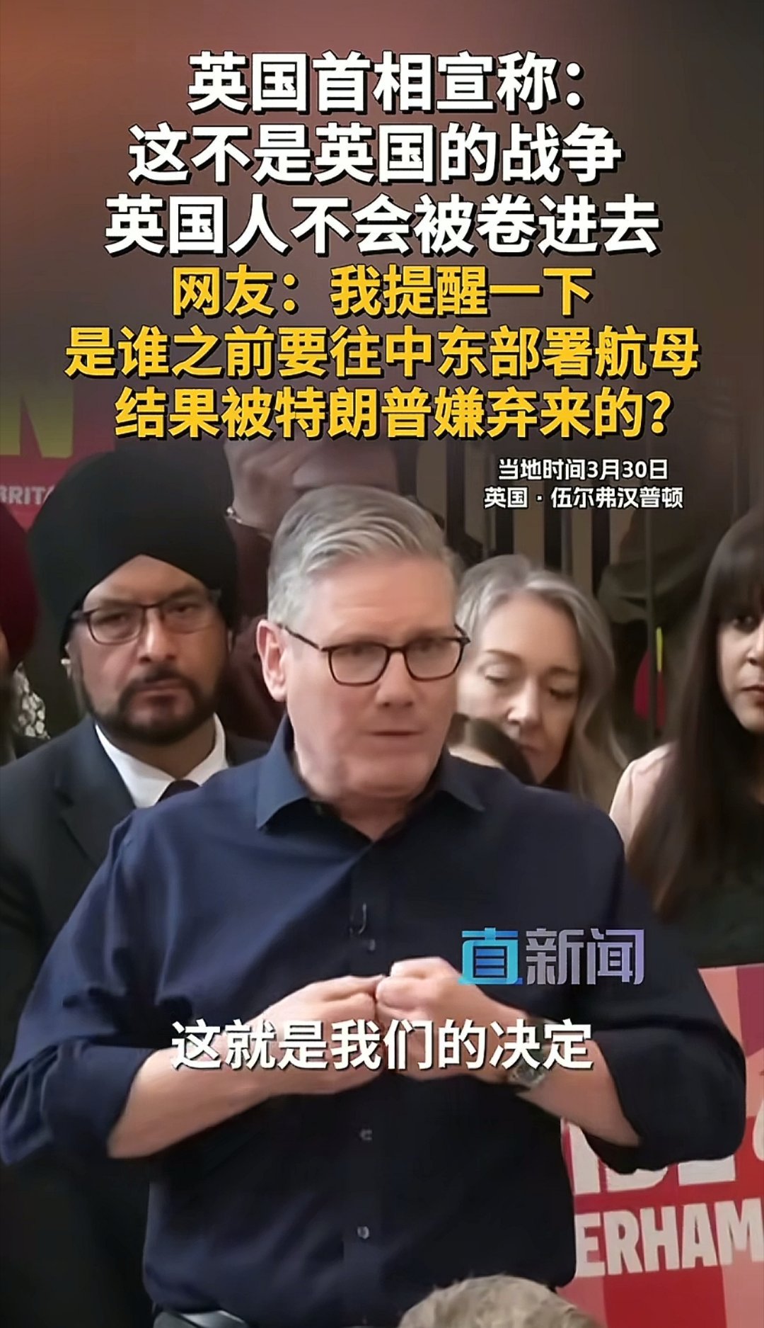 英国首相斯塔默回应,决策以英国国家利益为重,伊朗战事与英无关,英国不会卷入其中。
