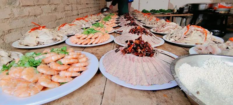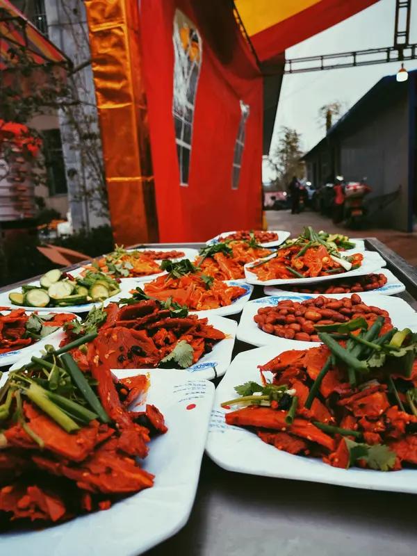 农村喜宴的菜那可太有特色了。一般都有红烧肉,色泽红亮,肥而不腻,入口即化,是喜宴必备。还有整鸡,寓意吉祥如意,鸡肉鲜嫩多汁,香味四溢。 红烧鱼也少不了,象征着年年有余,鱼肉鲜美,刺少肉多。粉蒸排骨也很受欢迎,软糯的排骨裹着米粉,香气扑鼻。另外,扣肉也是经典,梅菜和五花肉搭配,味道浓郁。 这些菜不仅美味,还承载着农村的传统习俗和美好祝福,每次参加农村喜宴,都能大快朵颐。