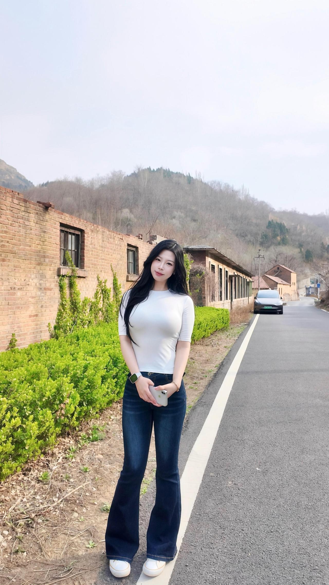 复古风穿搭,白T恤+牛仔裤,轻松自在。