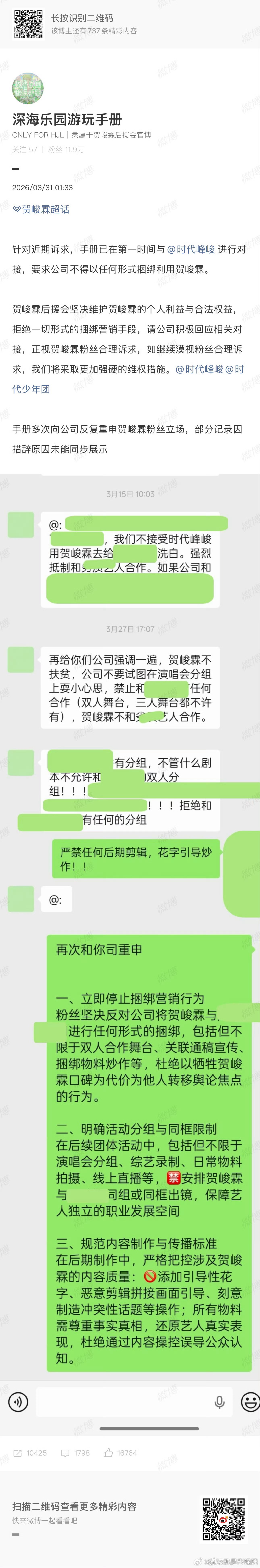 严浩翔后援会声明严浩翔后援会放话要给丁程鑫、刘耀文、严浩翔、贺峻霖后援会一点法律感化,而丁程鑫、刘耀文、贺峻霖后援会驳回严浩翔后援会的意图,并要求时代峰峻别带自家哥哥