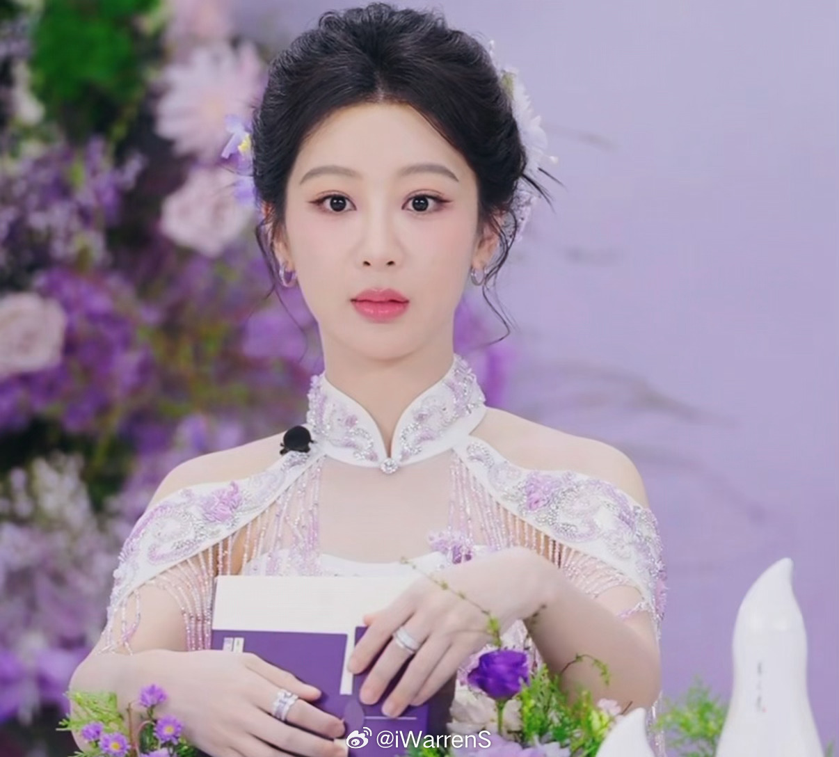 今晚杨紫盘发紫旗袍造型真的太好看了吧!杨紫直播