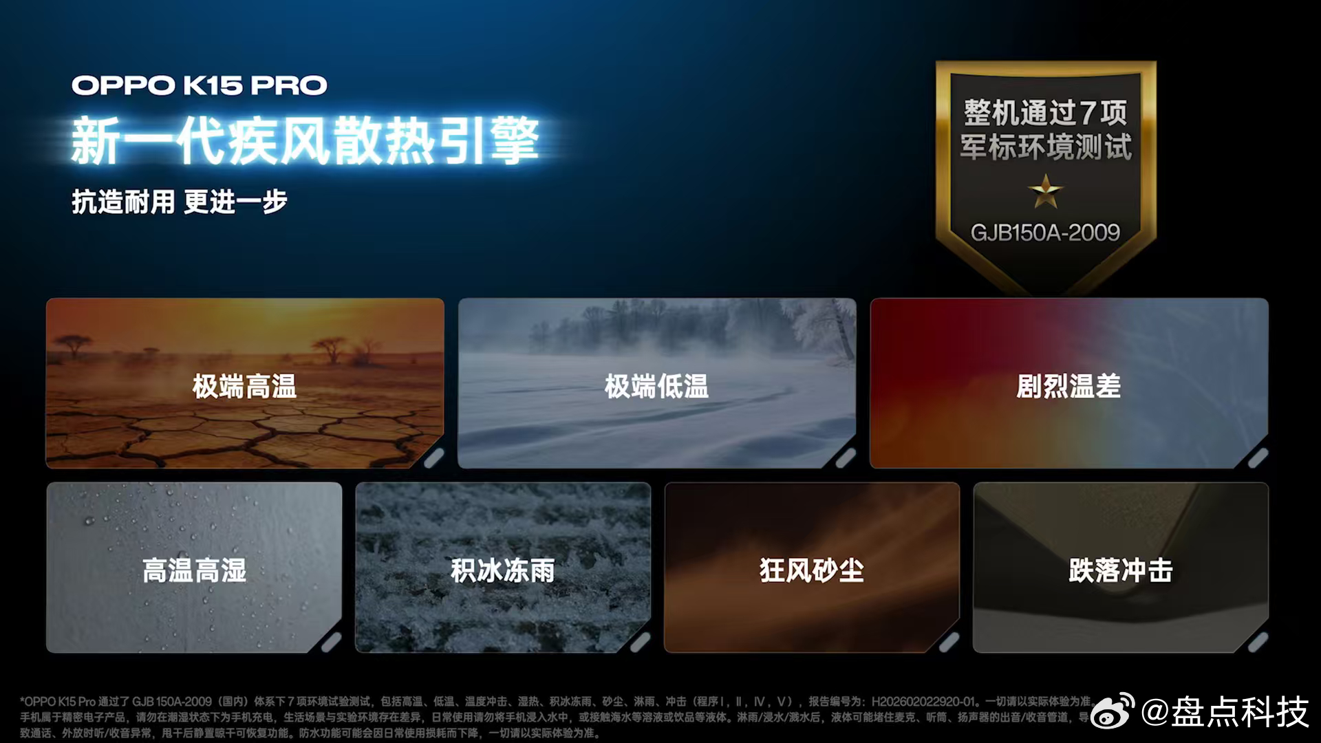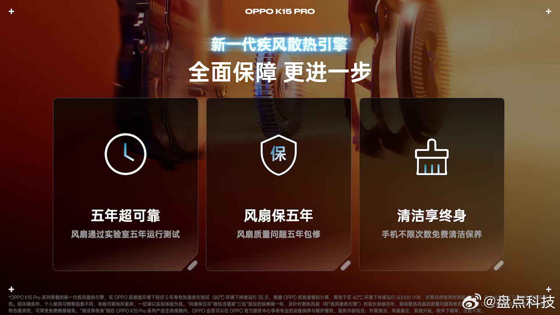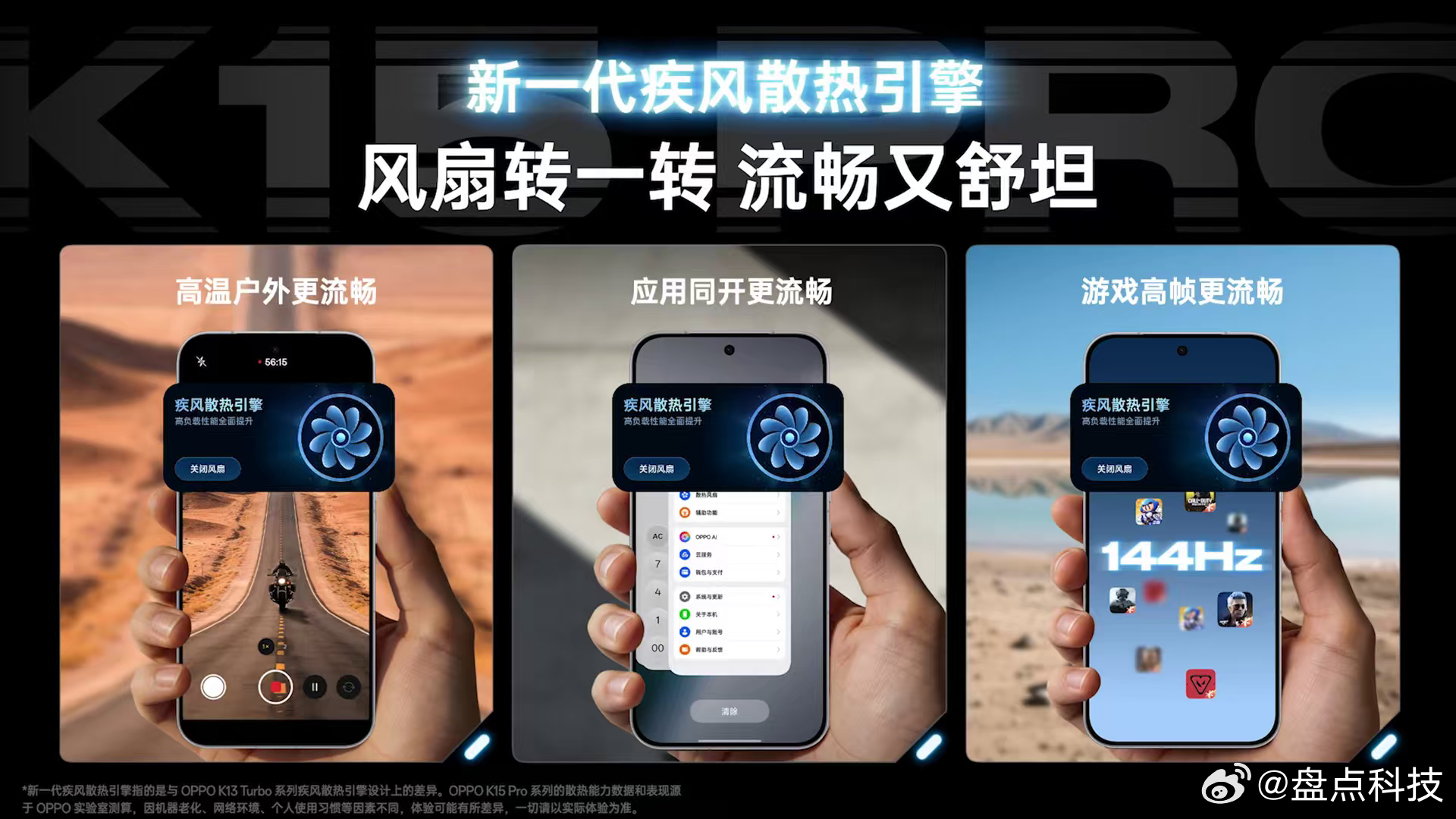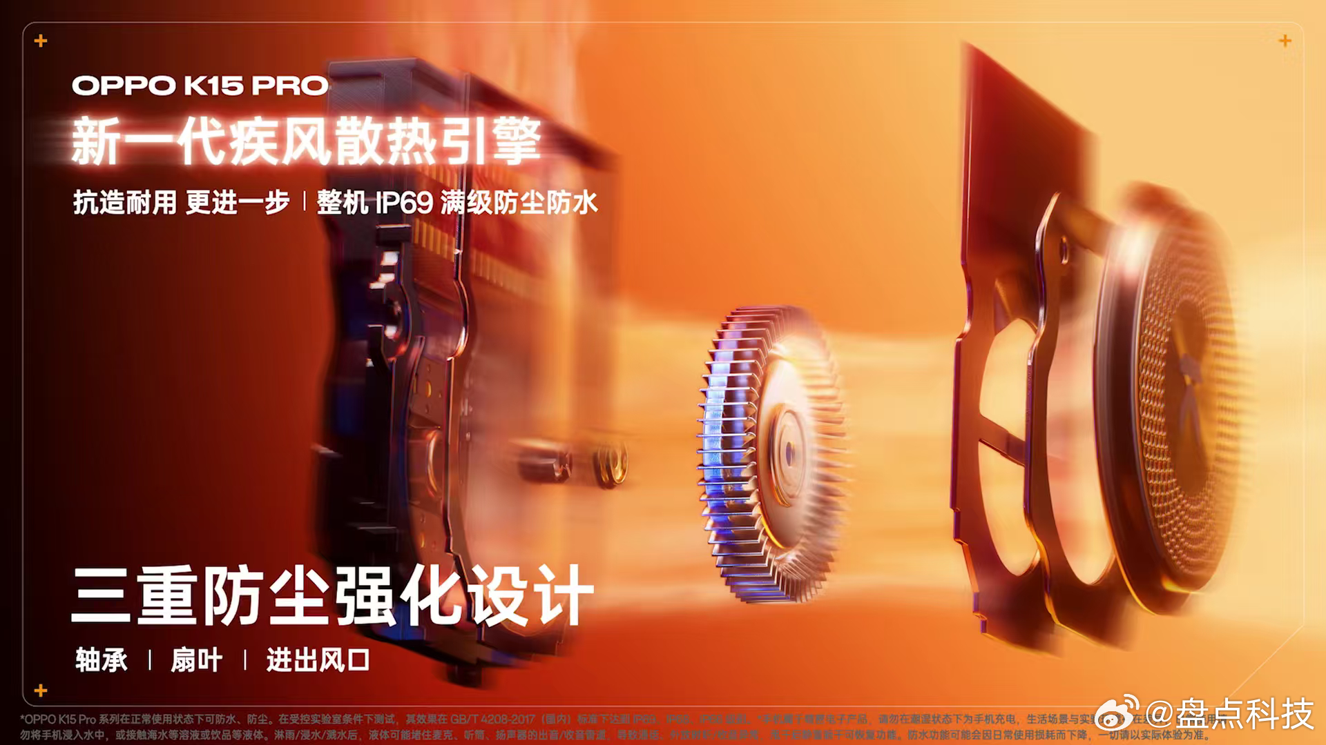 OPPO K15 Pro 系列K15 Pro 是市面上尺寸最小的带风扇手机。6.59英寸黄金尺寸,将新一代疾风散热引擎完美隐形于镜头模组间,视觉不突兀,触觉不硌手。