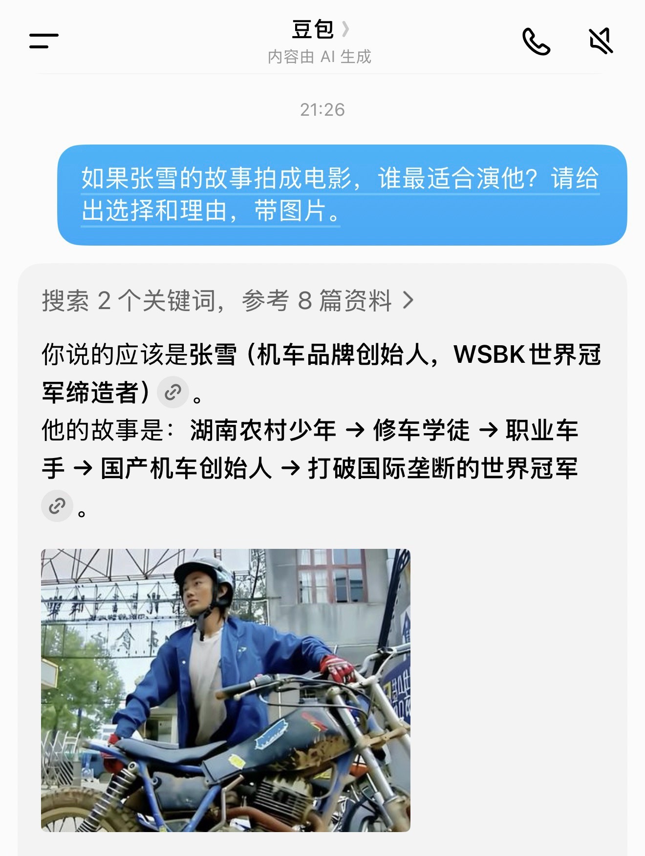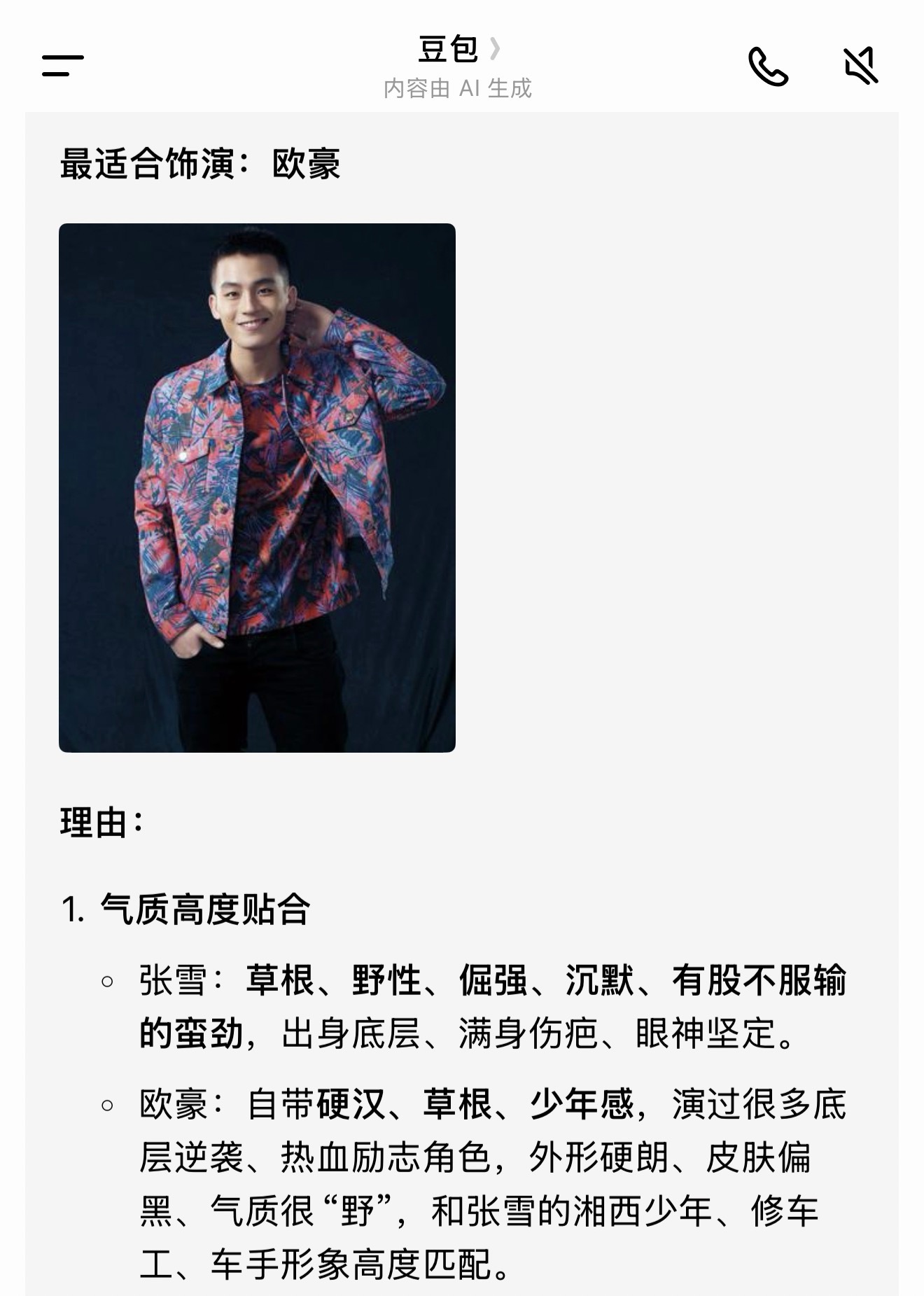 谁能演张雪我问豆包,它说欧豪,大家看看分析的对吗?
