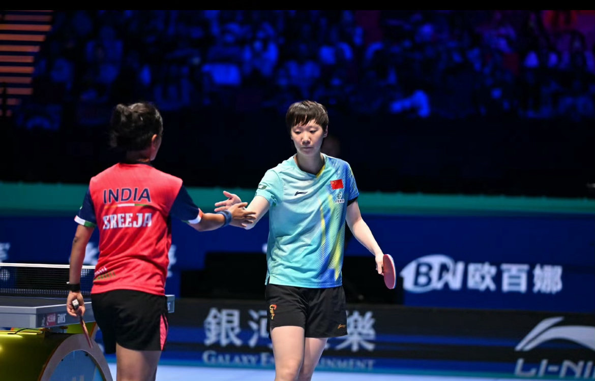 王曼昱则以3-0横扫印度选手斯莉嘉·阿库拉(11-8、11-7、11-3),用一场干脆利落的胜利锁定晋级名额。本赛季状态火热的她,在比赛中凭借超强的相持能力和细腻的反手技术,彻底压制对手的进攻节奏,三局比赛仅让对手拿下18分,攻防一体的完美表现,再次印证了其“鳗鱼”的超强实力。