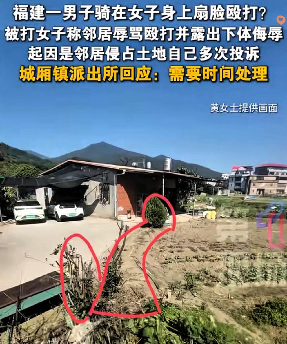 老实人维权有多难? 泉州黄女士用亲身经历告诉所有人,真的太让人心寒了。 自家50平土地被邻居强行侵占,她没吵没闹,只是向多个部门反映情况,想拿回属于自己的权益,结果非但问题没解决,还彻底惹怒了对方。 一个弱女子面对身强力壮的邻居,毫无反抗之力,被当众扇耳光、殴打头部,甚至被骑在身上施暴,还遭受了难以启齿的侮辱,光是想想都觉得气愤又窒息。 很多人总说远亲不如近邻,可遇到这种蛮不讲理、靠暴力压人的邻居,只会让人觉得恐惧。 农村土地是老百姓的立身根本,凭什么要忍气吞声被强占? 用暴力打压维权者,既失理更违法,不管是治安处罚还是刑责,施暴者都躲不掉。 比起一味拖延调解,及时厘清地界、严惩暴力,才能真正守住公平,不让老实人寒心。 维权本是正当行为,不该成为被殴打的理由,用暴力打压维权者,既不讲情理,更是触碰了法律底线。 目前相关部门已看到视频,表示会调查清楚后再做处罚,只希望能尽快给出公正处理,别让老实人在维权路上既受委屈又挨欺负。 换成是你遇到这种事,会选择一直忍让还是坚持维权到底?