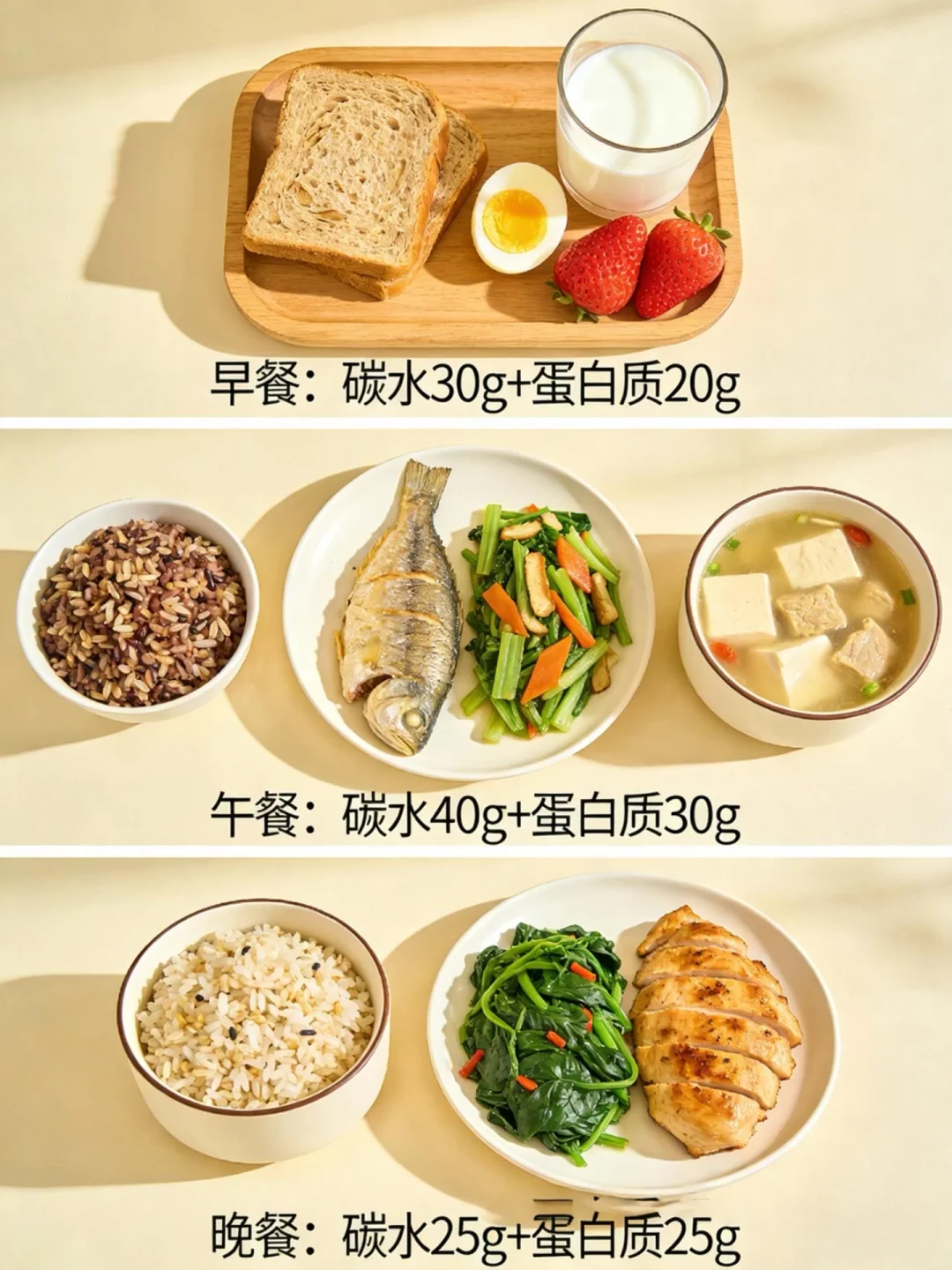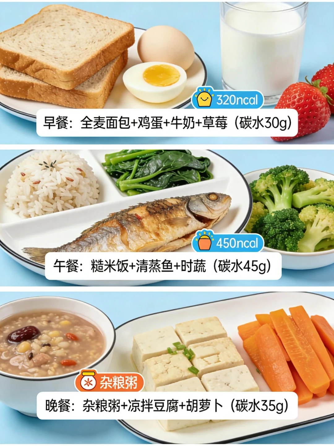 • 少量主食:红薯/山药 1小块 或 杂粮饭 1/3碗