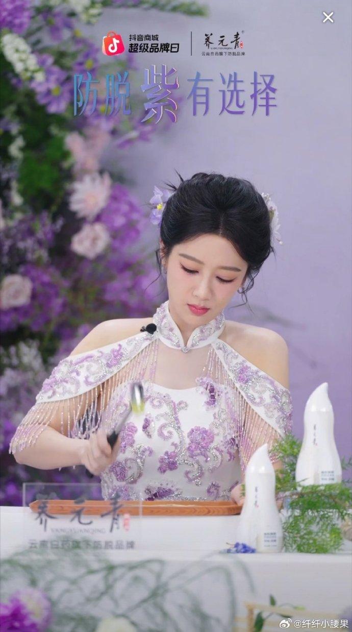 杨紫今晚直播直接火了!淡紫旗袍也太好看了杨紫4月1号晚上抖音养元青的直播刚