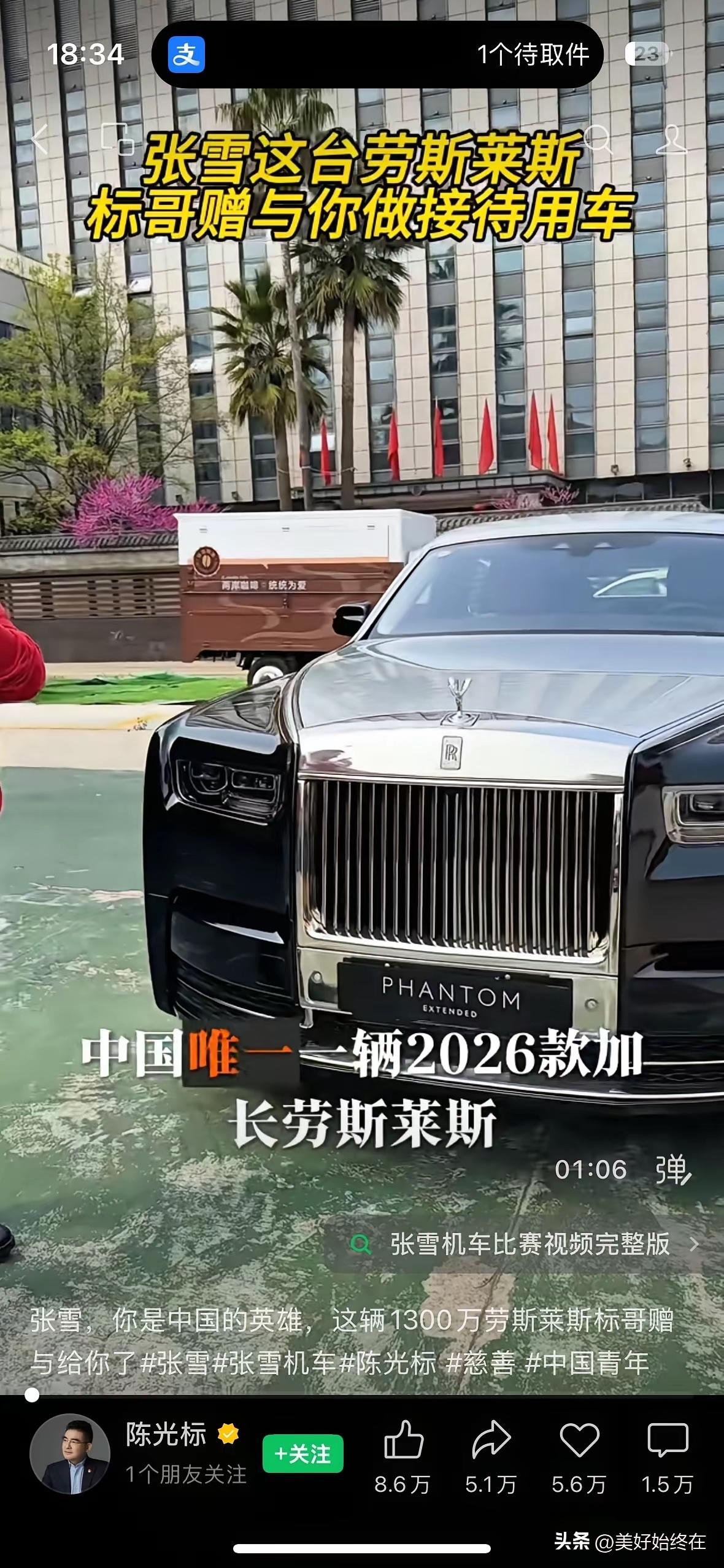 “张雪,你是中国的英雄,这辆1300万劳斯莱斯标哥赠与给你了” 这是标哥在得知张雪机车拿到 WSBK 双冠军后,对张雪说的! 标哥全名陈光标,以高调慈善闻名全国,此次出手赠出的2026款加长劳斯莱斯幻影,是国内唯一一台,价值高达1300万。他在公开视频里反复强调,张雪带着中国机车在世界顶级赛场连续拿下两个冠军,打破了欧美日品牌数十年的垄断,这是中国制造的骄傲,必须用最高礼遇表达敬意。截至目前,这台劳斯莱斯已运抵南京,陈光标正通过媒体联系张雪,希望能尽快完成交付。 张雪这个名字,在2026年3月28日之前,还只是国内摩托车圈子里的一个名字。那一天,葡萄牙波尔蒂芒赛道,法国车手瓦伦丁·德比斯驾驶张雪机车的53号820RR-RS赛车,在WSBK WorldSSP中量级组别第一回合正赛全程领跑,以3.685秒的绝对优势冲线。这是中国摩托车制造商首次在WSBK顶级赛事夺冠,打破了杜卡迪、雅马哈、川崎等国际豪强对该组别长达数十年的垄断。 更让人振奋的是,仅仅一天后,第二回合比赛里,德比斯在一度落后的情况下,在直线路段完成反超,再度夺冠,实现两日连冠。远在重庆的张雪机车总部,大屏幕前的张雪挥舞着国旗,热泪盈眶。他后来接受采访时说,那一刻所有情绪堆积在一起,他终于圆梦,站在了世界之巅。 很多人不知道,这个站在世界领奖台上的中国机车缔造者,是个土生土长的湖南怀化农村娃。1987年出生的他,14岁就辍学进入县城一家摩托车维修铺当学徒。那时的他,每天十几个小时泡在油污里,双手布满老茧,却从未抱怨,因为在他心里,这是靠近梦想的唯一阶梯。他不仅把车修好,还练就了蒙眼组装发动机的绝活,对机械结构烂熟于心。 2006年,19岁的张雪为了争取一个展示车技的机会,骑着一辆老旧摩托车,在冷雨中追着湖南卫视节目组的采访车狂奔一百多公里,浑身湿透、满身泥水仍不肯放弃。正是这份倔强,让他拿到了踏入职业机车领域的第一块敲门砖。此后几年,他当过赛车手,在摩托车工厂任职,一步步吃透了整车研发全流程,埋下了“造中国人自己的高性能摩托车”的执念。 2013年,张雪怀揣仅有的2万元积蓄来到重庆,这个被称为“中国摩托之都”的地方。他从改装起步,将改造样车发布在论坛,凭借车友信任筹得启动资金,赚到了人生第一桶金。2017年,他与合伙人创立凯越机车,推出450RR、500X等爆款车型,还带领团队征战达喀尔拉力赛,成为首个在该赛事完赛的中国摩托品牌。 2024年,张雪做出了一个让所有人意外的决定——离开亲手打造的凯越,在重庆两江新区创立以自己名字命名的张雪机车。他赌上全部身家,带领团队死磕发动机核心技术,无数次调试、推翻重来,终于在2026年推出820RR三缸仿赛量产车型,核心部件100%自主国产化,售价仅4.38万元,对标20万级国际车型。 为了冲击世界冠军,张雪没有从零组建车队,而是在2025年米兰车展上,官宣签下意大利伊凡兄弟车队——这支在欧洲赛车界赫赫有名的三冠王团队,曾两度包揽Supersport组别车手与车队双冠。张雪选择用最高效的方式,直接买下顶级运营团队,为的就是让中国机车少走弯路,尽快站上世界赛场。 WSBK夺冠后,张雪机车的发展驶入快车道。2026年初,品牌完成9000万元A轮融资,估值突破10亿元。重庆市两江新区也宣布,为张雪机车规划近200亩的新基地,打造高端摩托车产业园。 如今,1300万劳斯莱斯的馈赠,让张雪再次成为焦点。有人说这是对为国争光者的最高礼遇,也有人讨论这台豪车的归属。但无论结果如何,张雪用20年时间,从修车学徒到世界冠军缔造者,用一辆中国机车打破国外垄断的故事,已经深深印在了国人心里。 各位读者你们怎么看?欢迎在评论区讨论。