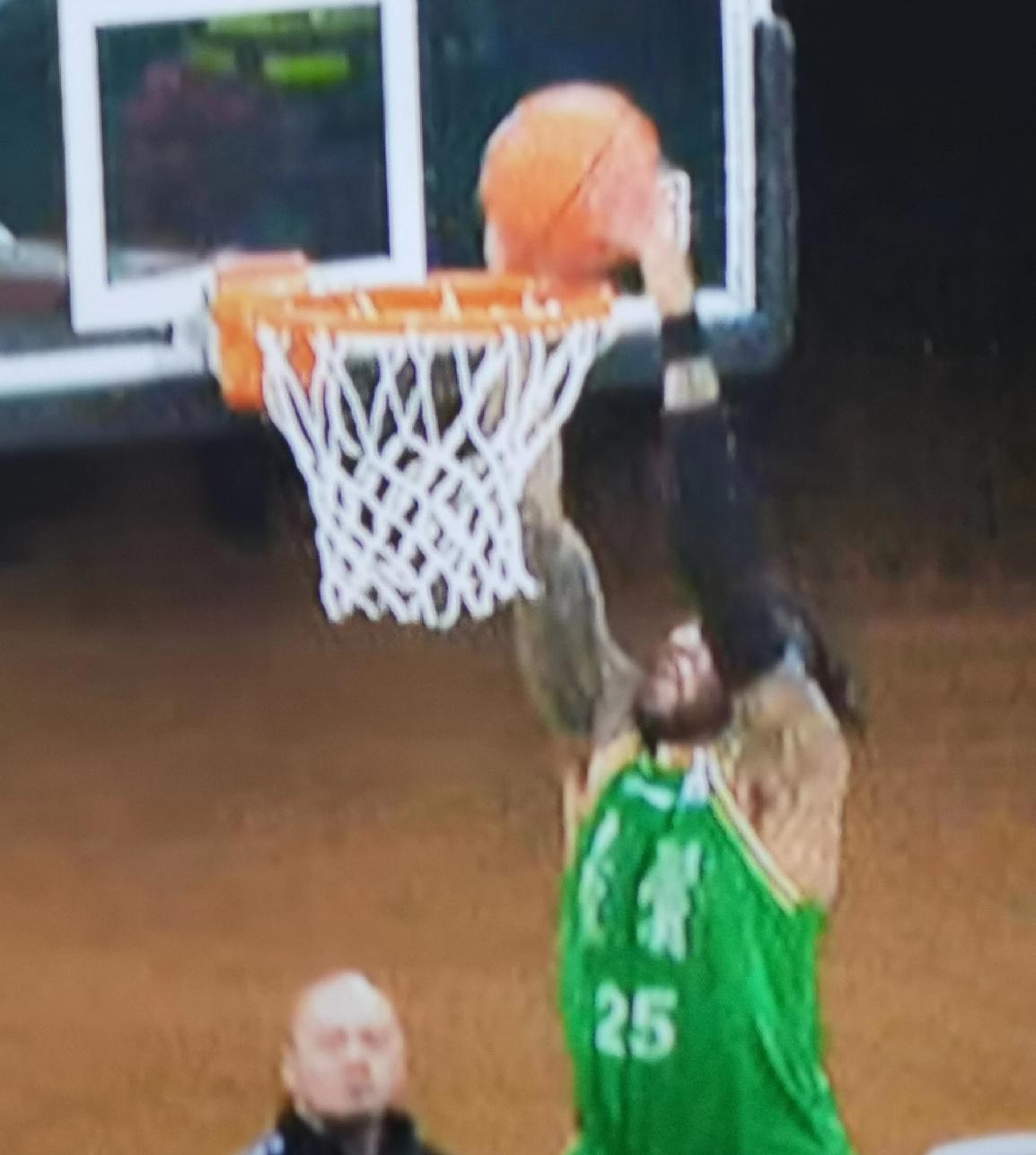 莫兰德扣篮挂筐五秒技犯不应该。 辽宁对新疆第四节6分53秒和5分34秒,辽宁队先后给新新疆队送上一次技犯一次违体,让纳托尔和李炎哲连投带罚连得5分,幸亏当时领先十分,不然很难说能赢。 第一次是莫兰德接赵继伟传球双手暴扣,因过于兴奋,顺势在篮筐上做了个引体向上,挂筐时间达五秒钟,被裁判吹了个技犯。 第二次是付豪在篮下为阻止李炎哲投篮,不必要的“拥抱”了李炎哲,结果被裁判吹了违体犯规…… 这两次犯规都不应该出现,尽管最终赢了球,但必须吸取教训,不然会吃大亏。