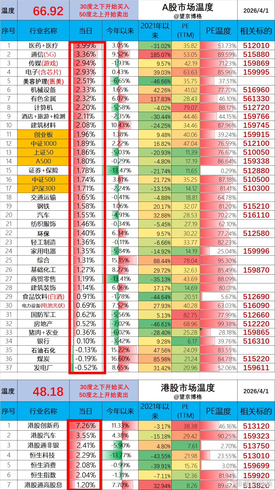 看了一下最近创新药企业披露的业绩。恒瑞医药2026年业绩指引净利润增长30%,可以说这次就是实打实的业绩驱动,说不定未来几个月又是创新药领涨了。还记得前段时间创新药也是人人挨打,但是博格还是坚持说看好...看好...已经重仓怎么说呢?当一个东西上涨时众口一词的看好,本是人之常情;下跌时依旧坚守的认可,才真的需要定力和勇气.....而往往在无人喝彩的下跌里,才通常是最佳买点....博格今天账户回血一大块,全靠港股创新药与恒生医疗撑着,希望它们再接再厉,早日创出新高!今日温度:A股今天66.92度,相比上一个交易日上升+1.70度;港股今天48.18度,相比上一个交易日上升+2.50度;欢迎留言!也感谢大家的点赞与点爱心~ A股高开震荡