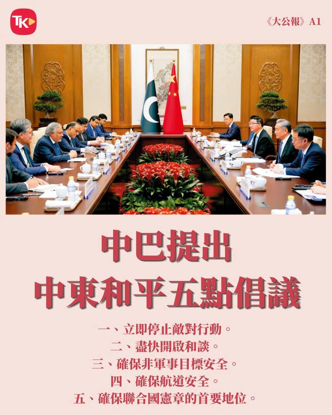 《香港高Sir•高能•热点词》 2026.04.01 热点词:中巴五点倡议发和平之声 阻海湾及中东战火蔓延 把搞风搞雨的老美比下去 3月31日,中共中央政治局委员、外交部长王毅同巴基斯坦副总理兼外长达尔在北京举行会谈。双方就海湾和中东地区局势交换意见并提出以下倡议:一、立即停止敌对行动。二、儘快开启和谈。三、确保非军事目标安全。四、确保航道安全。五、确保联合国宪章的首要地位。外交部回应记者问时则表示,中巴五点倡议是开放的,欢迎各国和国际组织响应和参与。 高SIR:当前海湾与中东局势正处于历史性的十字路口,在国际社会屏息以待和平契机之时,中国与巴基斯坦挺身而出,于3月31日发表关于恢復地区和平稳定的五点倡议。这场及时雨般的中巴五点倡议发和平之声,展现了全球南方大国维护公义的责任与担当。这份倡议核心在于「一停二谈三确保」,主张立即停火、开启和谈,并确保非军事目标、航道安全及联合国宪章的首要地位。在美方无视国际法、悍然发动军事打击之际,中巴明确提出保护平民原则不能突破,停止攻击能源及核设施等重要基础设施。这种对人道主义与国际准则的坚守,正是为了从根源上阻海湾及中东战火蔓延。相比之下,美国总统特朗普却在专访中大放厥词,将结束战争的条件设定为将伊朗「打回石器时代」,甚至威胁因盟友不愿参战而退出北约。两相比较,高下立判。中国与巴基斯坦始终坚持对话与外交是解决冲突的唯一可行途径,致力于建立全面的和平框架。而美国政客却在盟友拒绝派军舰护航后,将合作多年的伙伴斥为「纸老虎」,甚至考虑採取「付费使用模式」来惩罚盟邦。这种唯利是图、动辄退群与威胁的强权逻辑,不仅让欧洲盟友齿冷,更让全世界看清谁才是地区动盪的始作俑者。中巴倡议的开放性与包容性,无疑在道义高度上把搞风搞雨的老美比下去。高SIR认为,和平不应是强权施捨的结果,而应基于相互尊重与多边协作。当老美仍在考虑如何退出北约、撤出驻军以实施「政治报復」时,中国与巴基斯坦已为全球提供了理性的和平方案。这份倡议不仅是为了当下的停火,更是为了维护全球产供链的稳定与世界经济的长远发展。历史终将证明,只有坚持联合国宪章宗旨、尊重各国主权领土完整的和平之路,才是人间正道。面对执迷于战争游戏的霸权者,国际社会应更积极响应中巴倡议,共同筑起守护中东与世界和平的坚固长城。 特朗普正认真考虑退出北约海湾国家“花钱买安全”还能走多久特朗普称美军将很快撤出伊朗战事