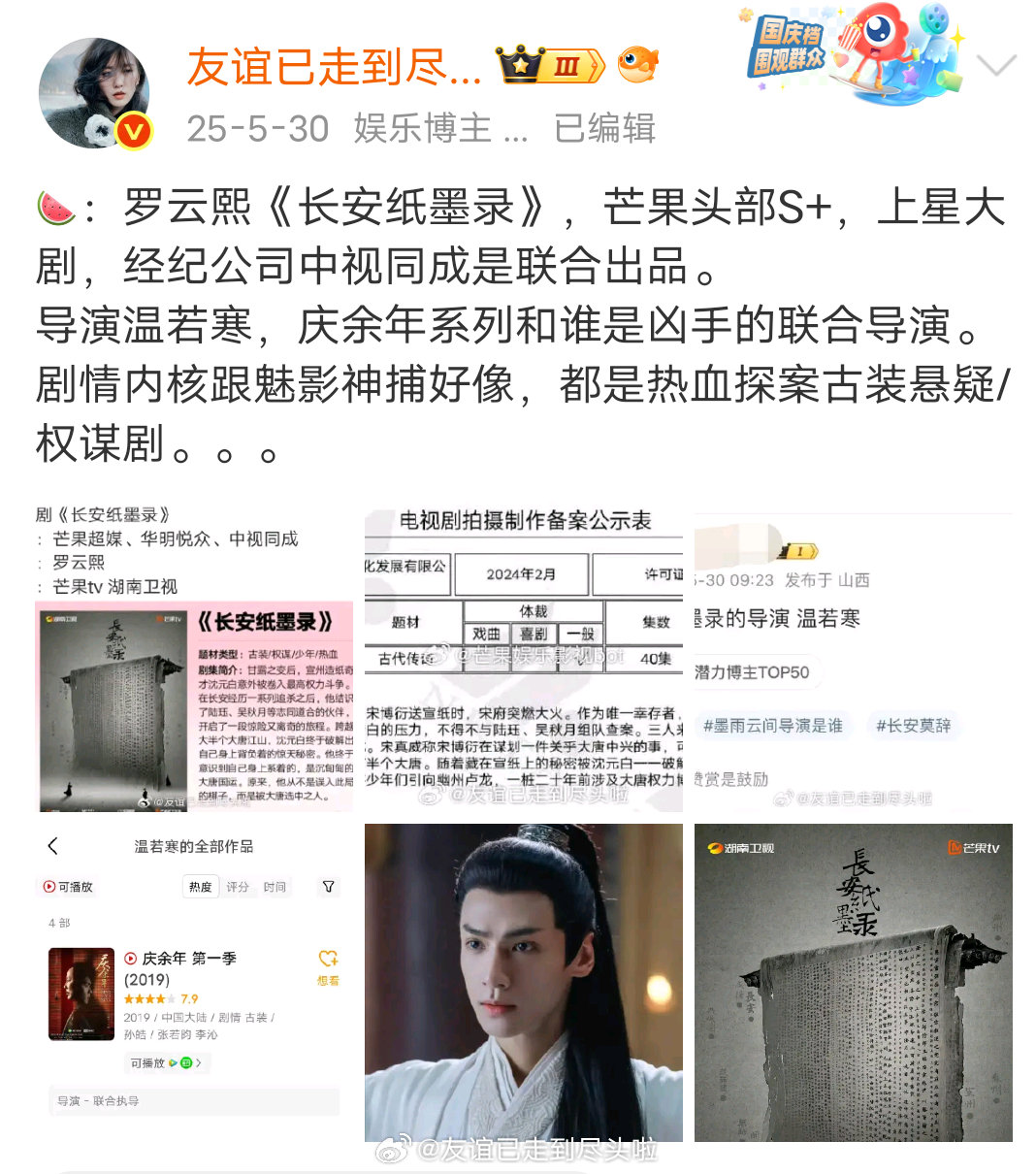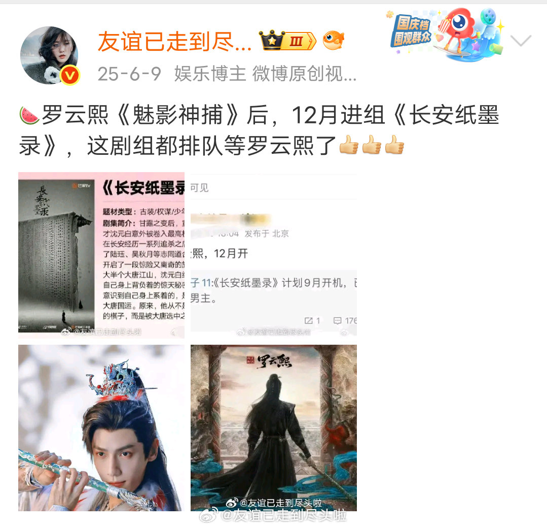 🍉:《长安纸墨录》男主从罗云熙变成井柏然这部剧从去年9月拖到现在一直没开机,结果现在换人了。