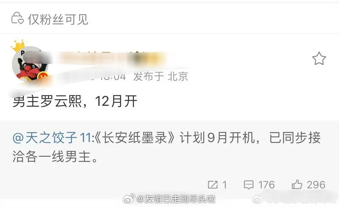 🍉:《长安纸墨录》男主从罗云熙变成井柏然这部剧从去年9月拖到现在一直没开机,结
