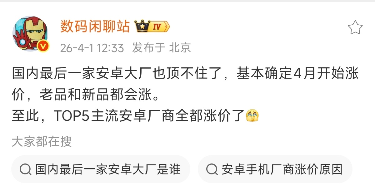 小米的10亿补贴差不多用完了,顶不住内存上涨的压力了。