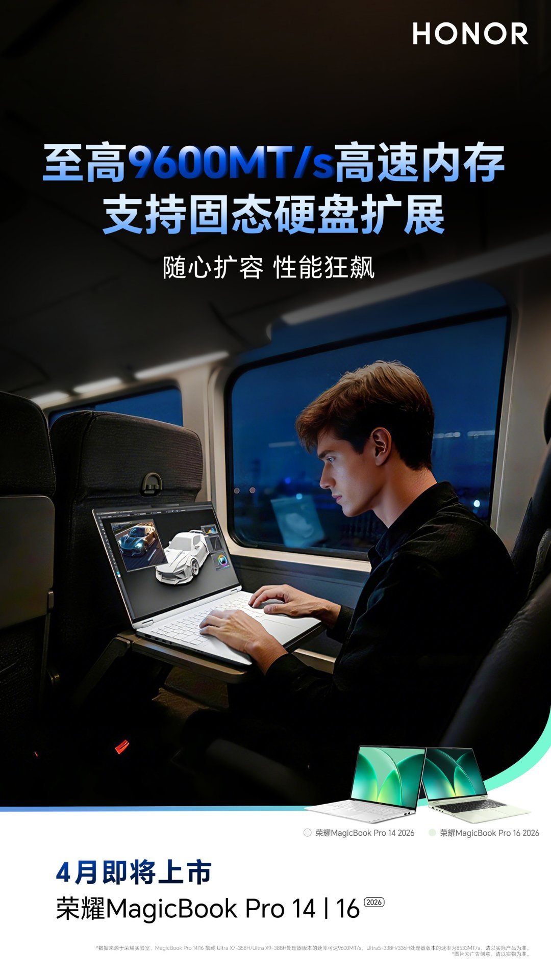 【荣耀 MagicBook Pro 2026 预热:14.6 英寸 OLED 触控屏、16 英寸 165Hz LCD 屏】