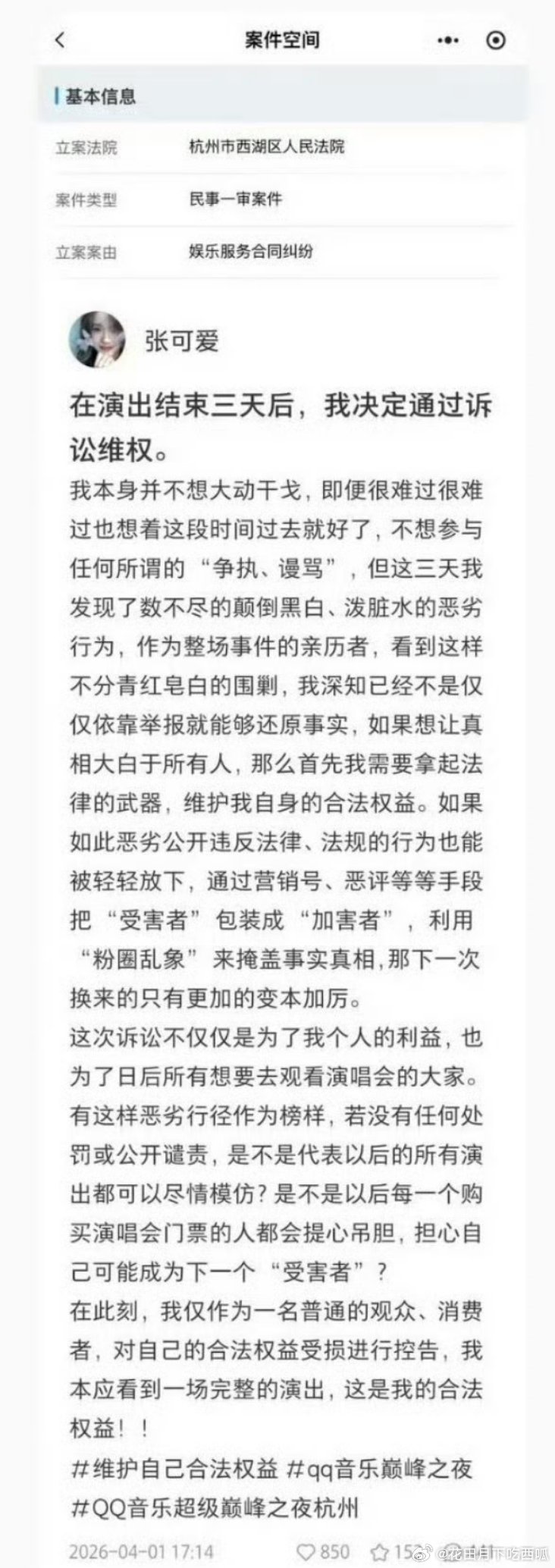 因为超级巅峰夜线下应援,丁禹兮粉丝公开投 诉之后,又向法院正式起诉维⭕了,闹这么大的吗