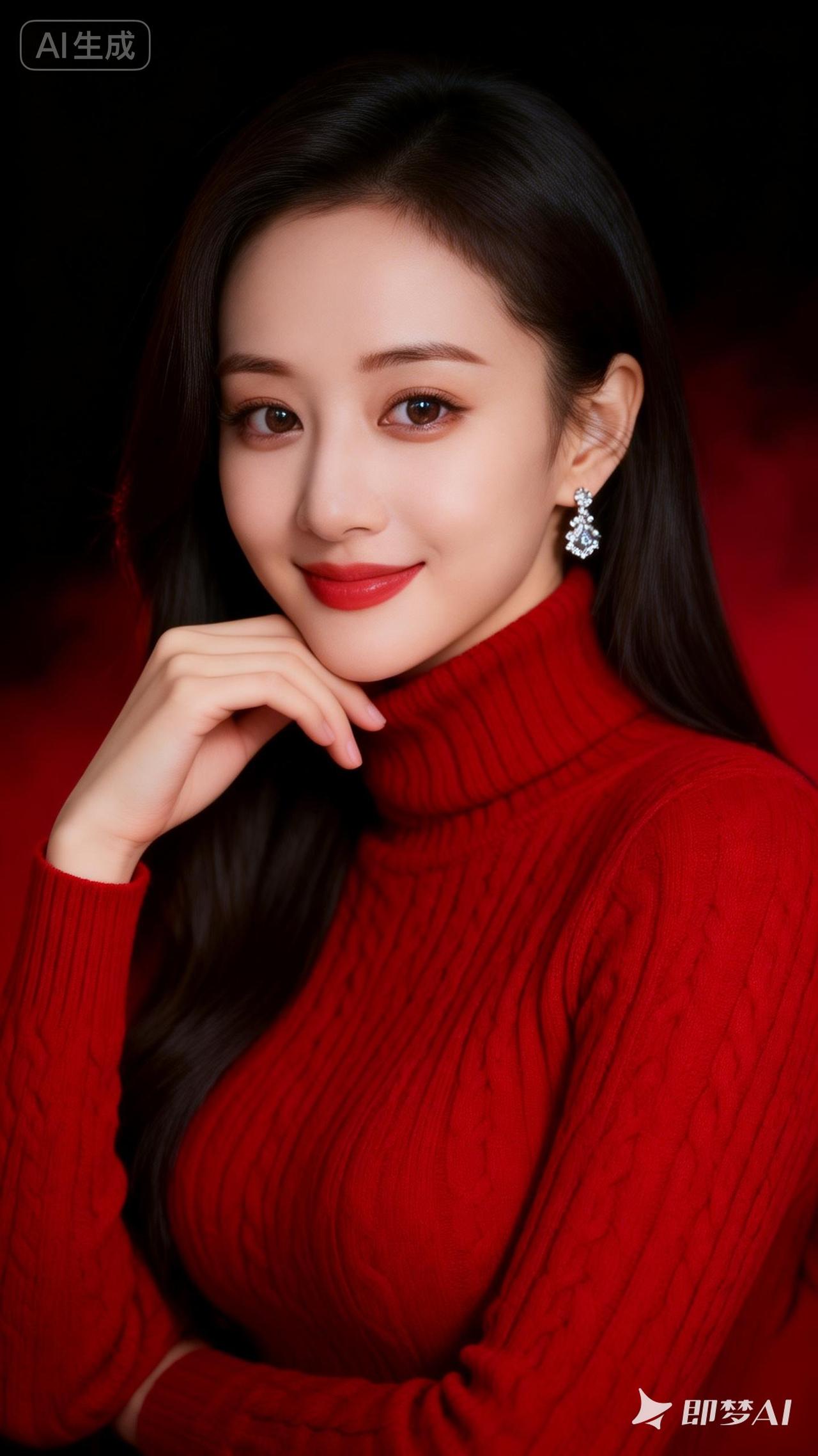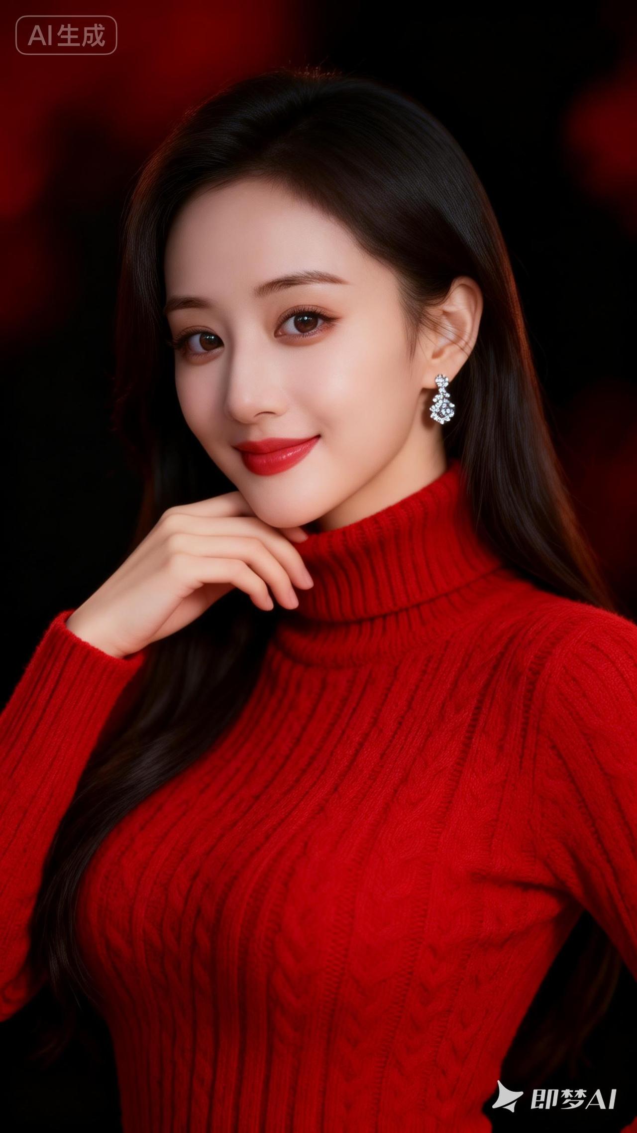 优雅红唇,时尚穿搭,魅力女神