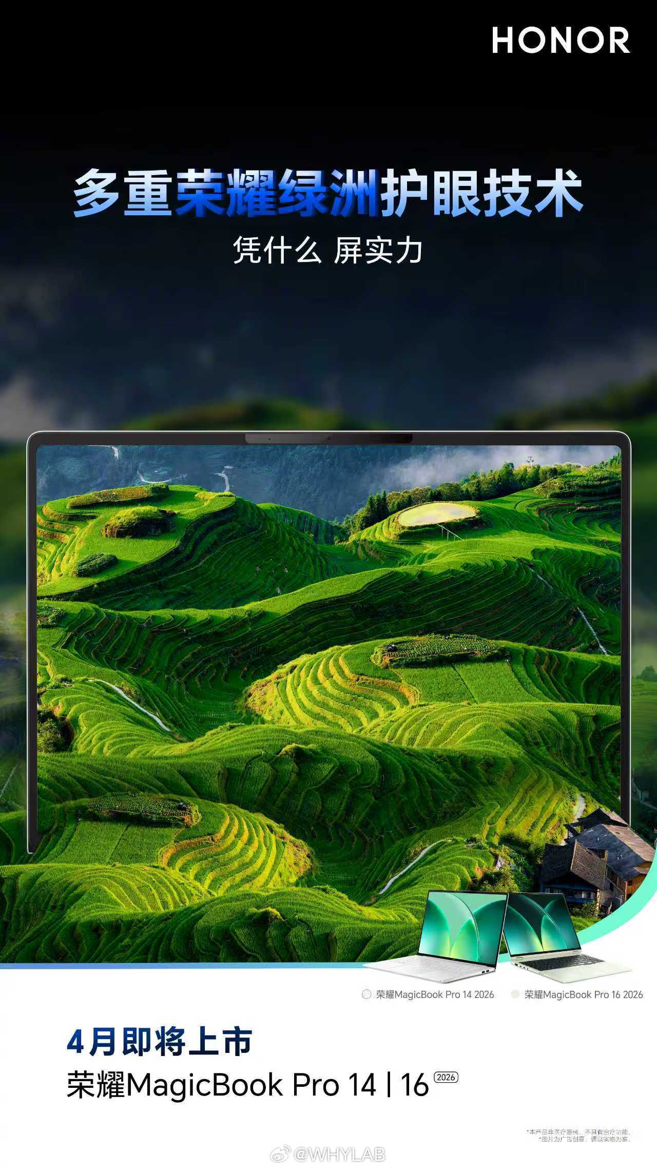 2026 款荣耀 MagicBook Pro 系列开始预热,4 月上市,这代很有搞头。