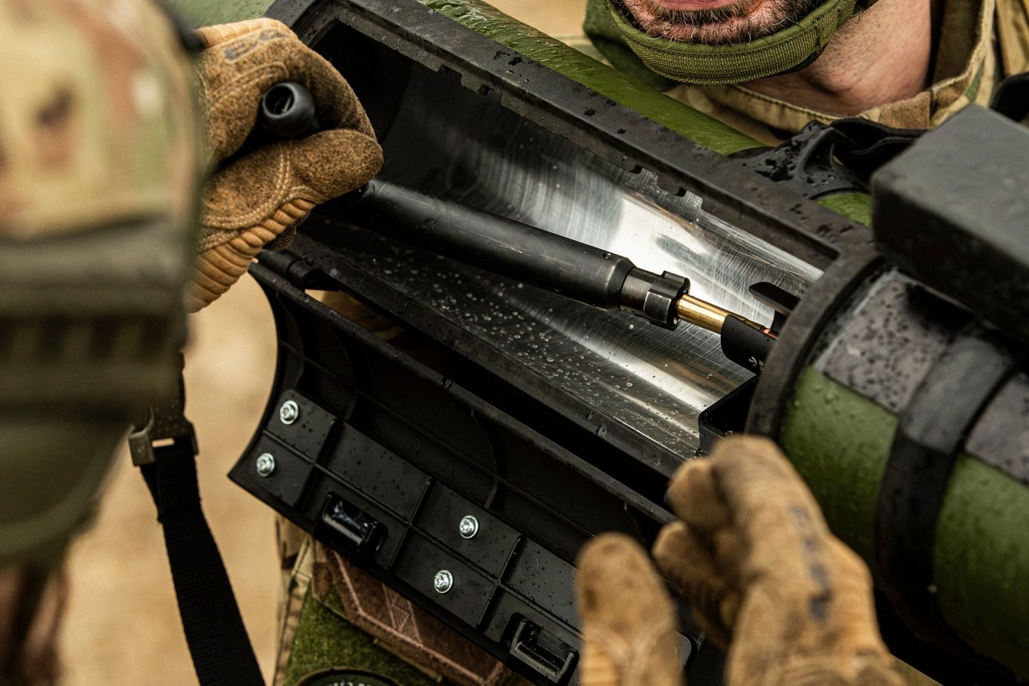 烽火问鼎计划 匈牙利陆军使用RGW110火箭筒训练设备,有点像以前咱们的以枪代炮,内置一根枪管,可以手动装填一发德国MEN公司的7.62mm的亚声速曳光弹。