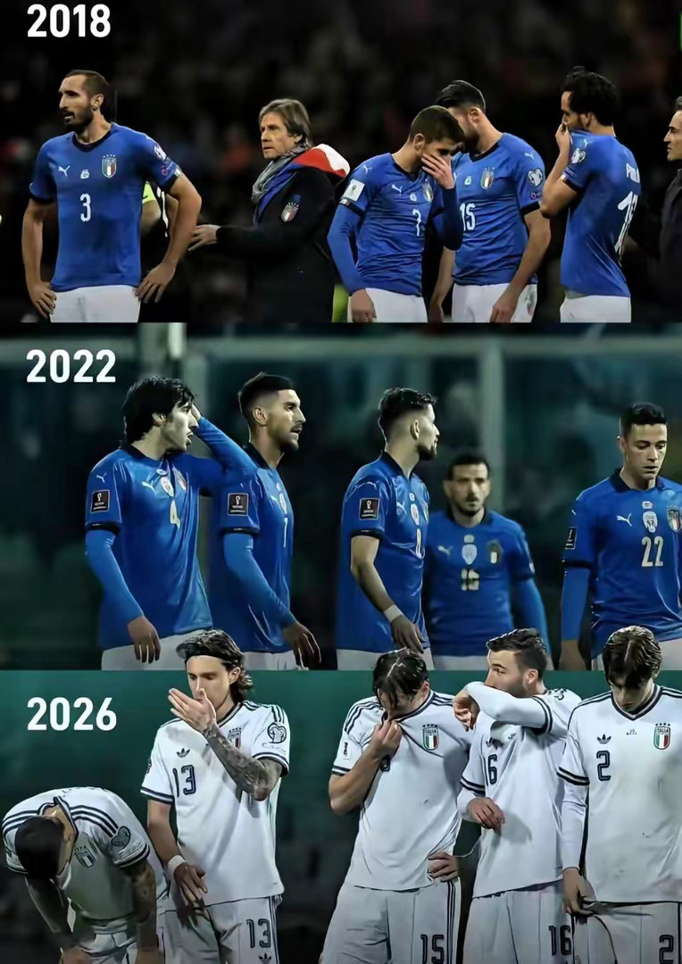 比赛中,意大利队在第15分钟由基恩破门取得领先,却在第41分钟因巴斯托尼红牌少打一人,最终在第79分钟被波黑扳平比分。残酷的点球大战中,意大利队前三罚就罚丢两个,而波黑四罚全中,彻底终结了蓝衣军团的世界杯希望。哪怕本届世界杯扩军至48队、欧洲区拥有16个参赛名额,意大利依然没能抓住机会,连续三届倒在附加赛,成为足坛最大冷门。