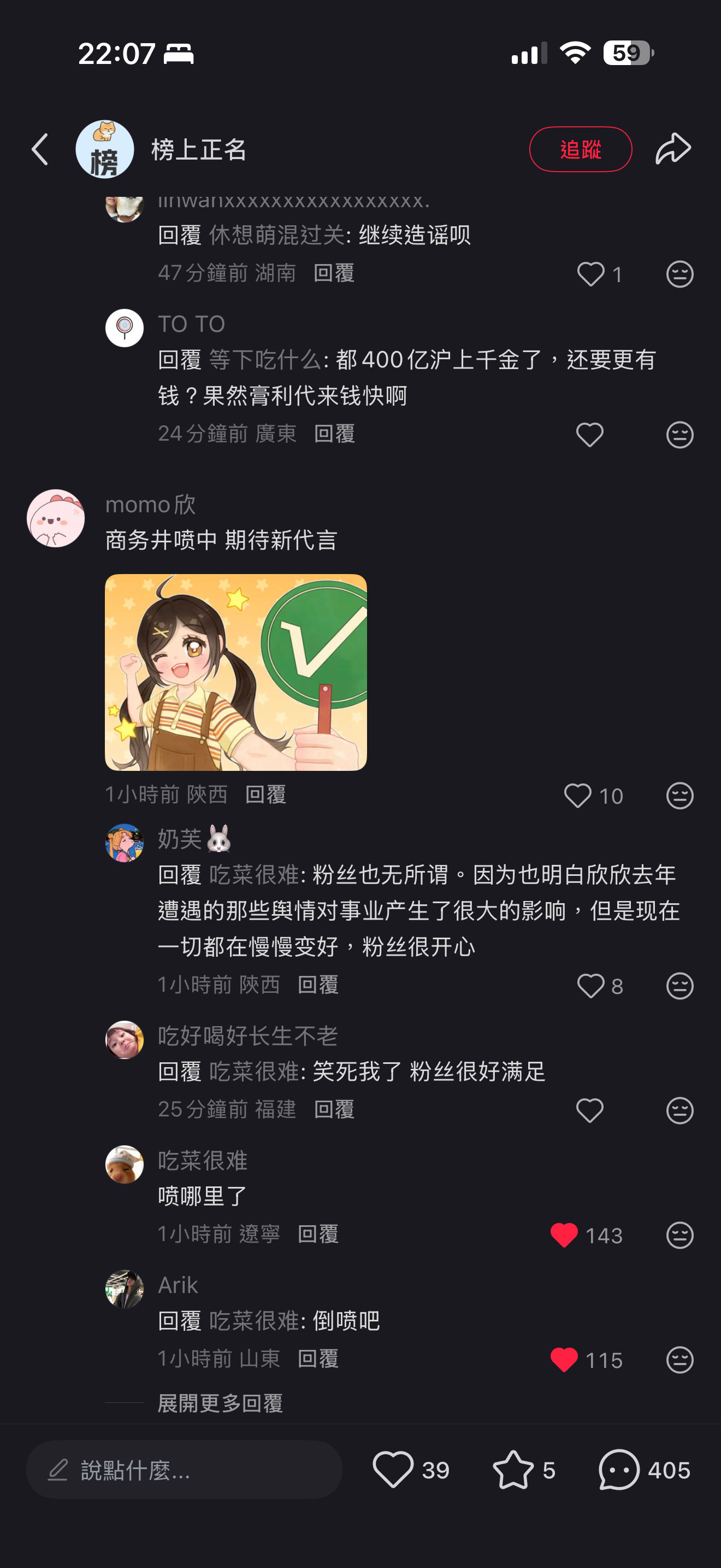 虞只剩9个代言了,过几天脆脆鲨应该也会掉了。评论区的路人缘如同奶油一般化开。